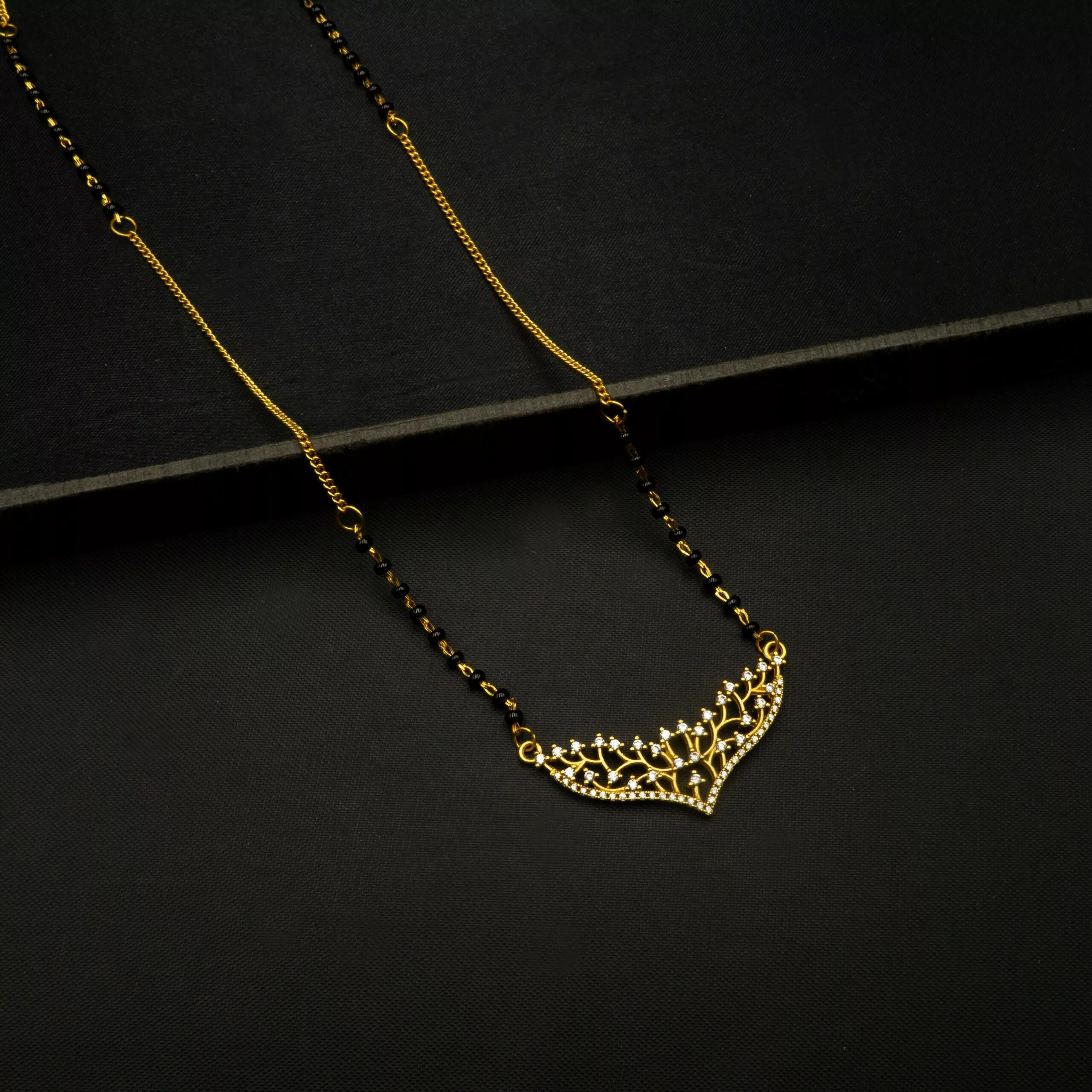 Tags: American Diamond, Black Beads, Brass, Cubic Zirconia, Gold Plated, Mangalsutra