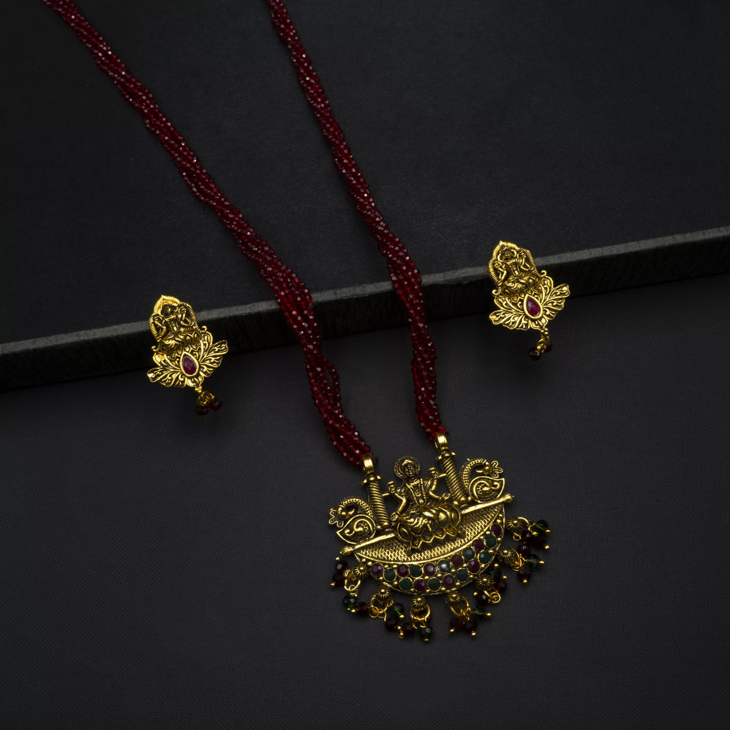 MA-2307001 – Long Red Hydropotey Oxidized Antique Gold Finish Laxmi Mangalsutra Set