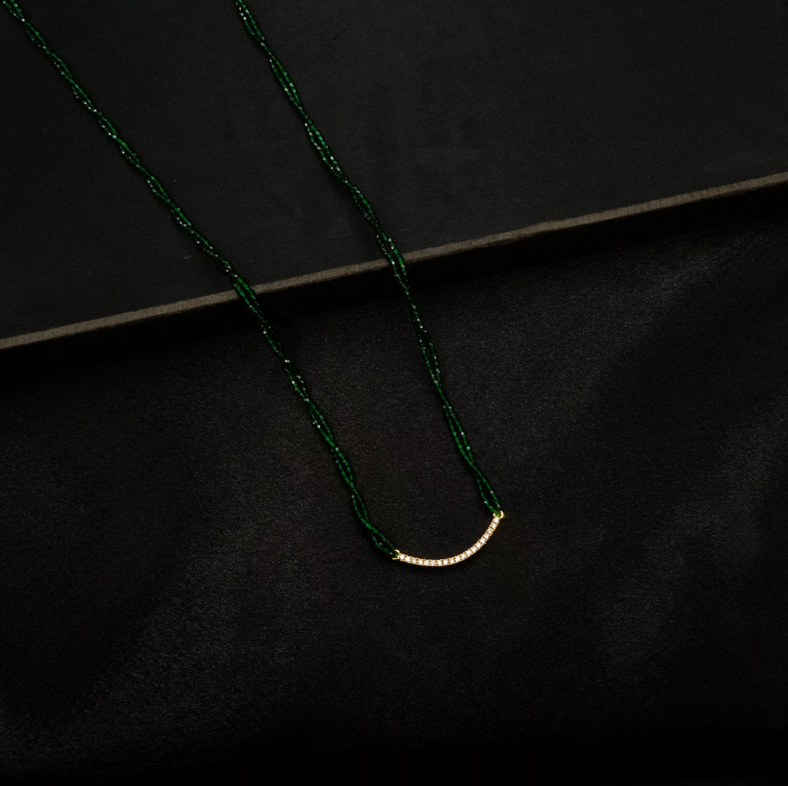 MA-2312014 – Gold Plated American Diamond Green Long Hydropotey Mangalsutra