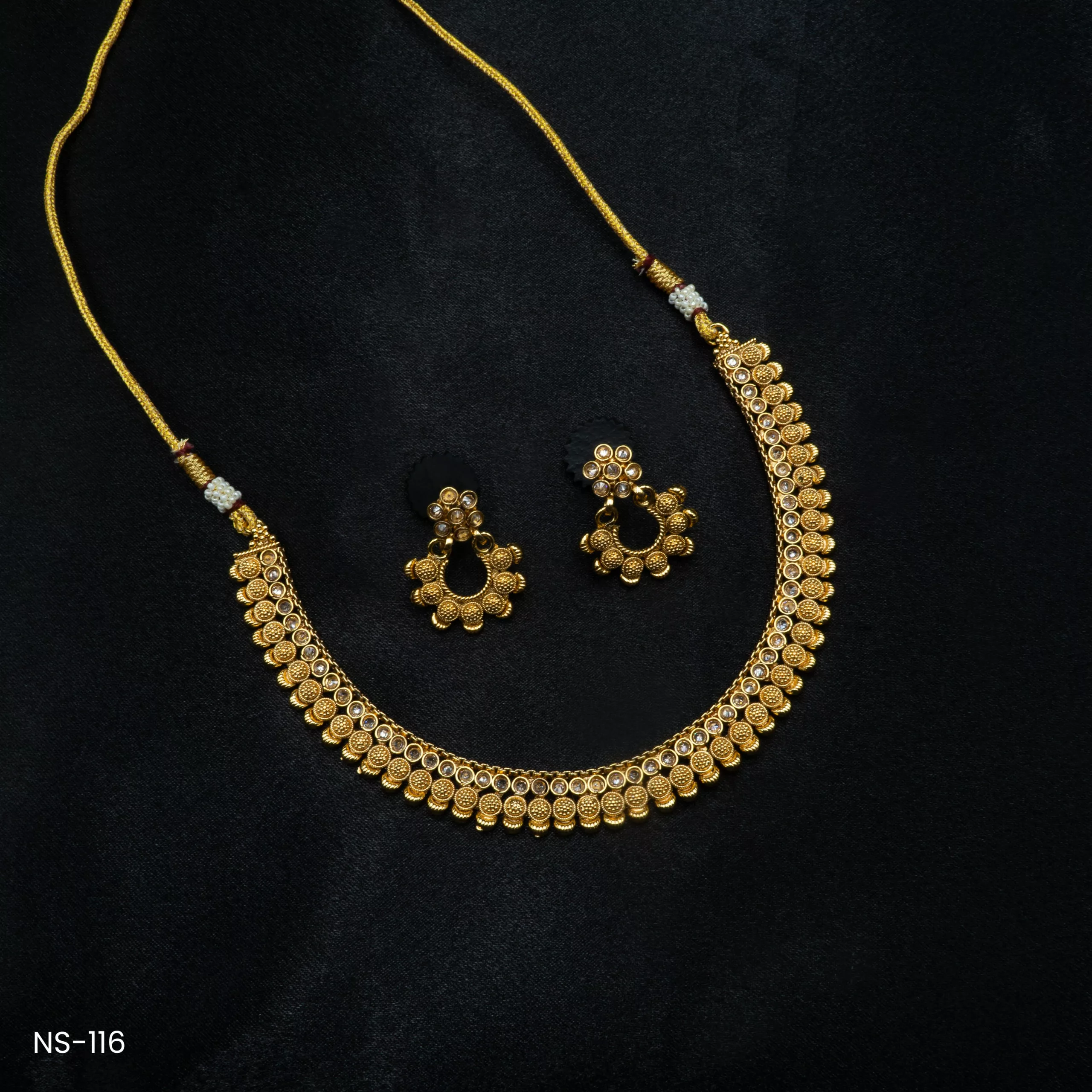 NS-116 – Antique Gold Finish Temple Necklace Set