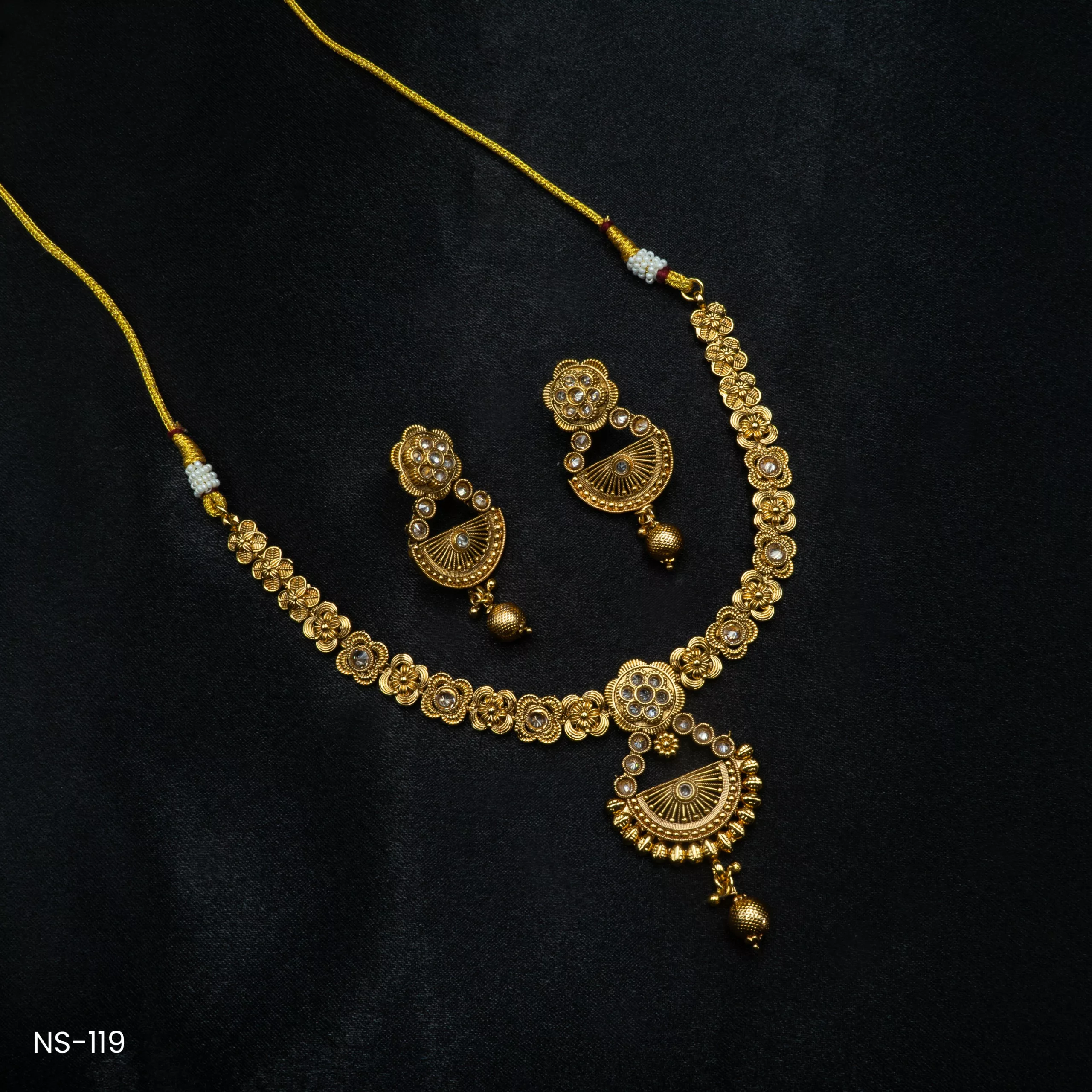 Be the first to review “NS-119 – Golden Glory Antique Finish Temple Necklace Set” Cancel reply