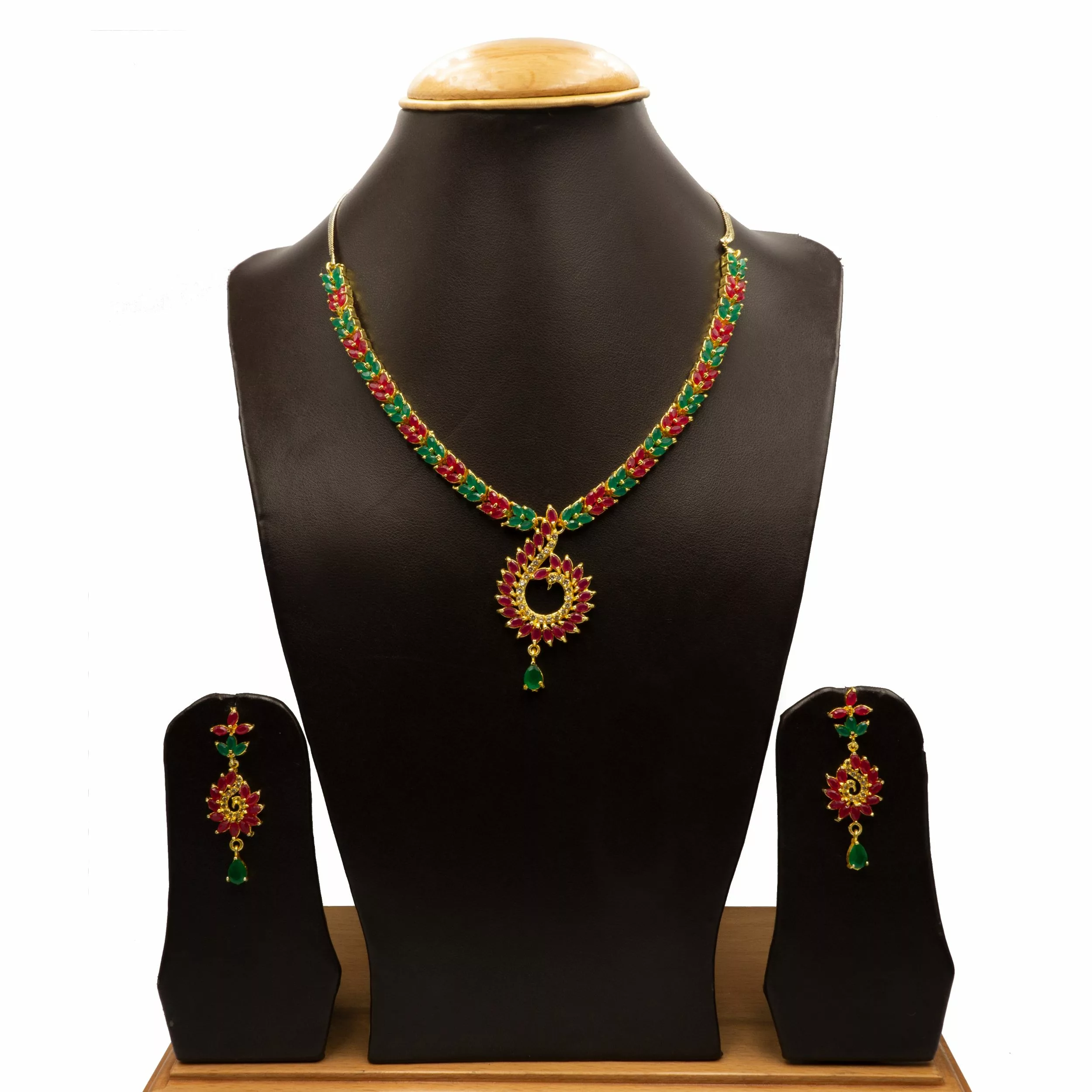 NS-2002033 - American Diamond Radiant Ruby Necklace Set