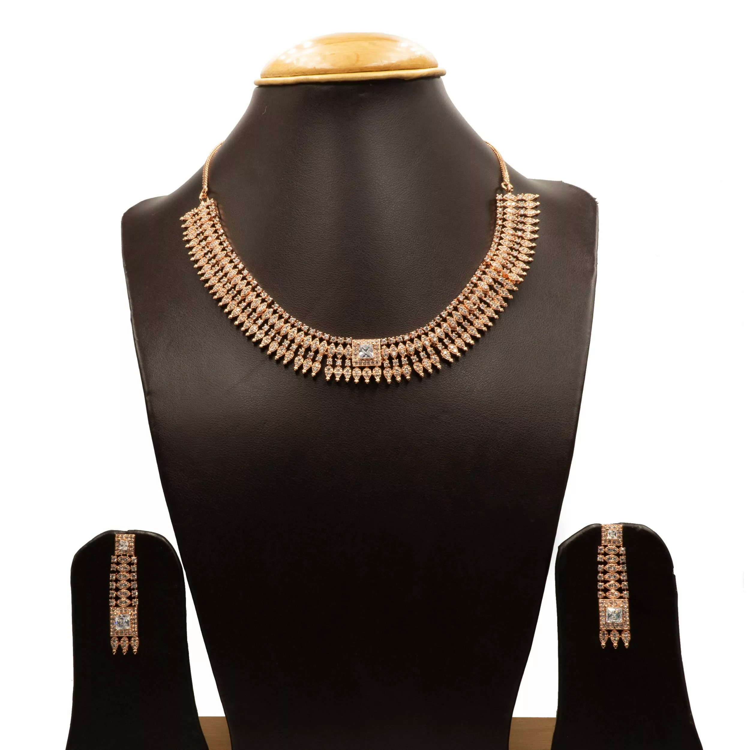 NS-2101024 – Rose Gold Plated American Diamond Necklace Set