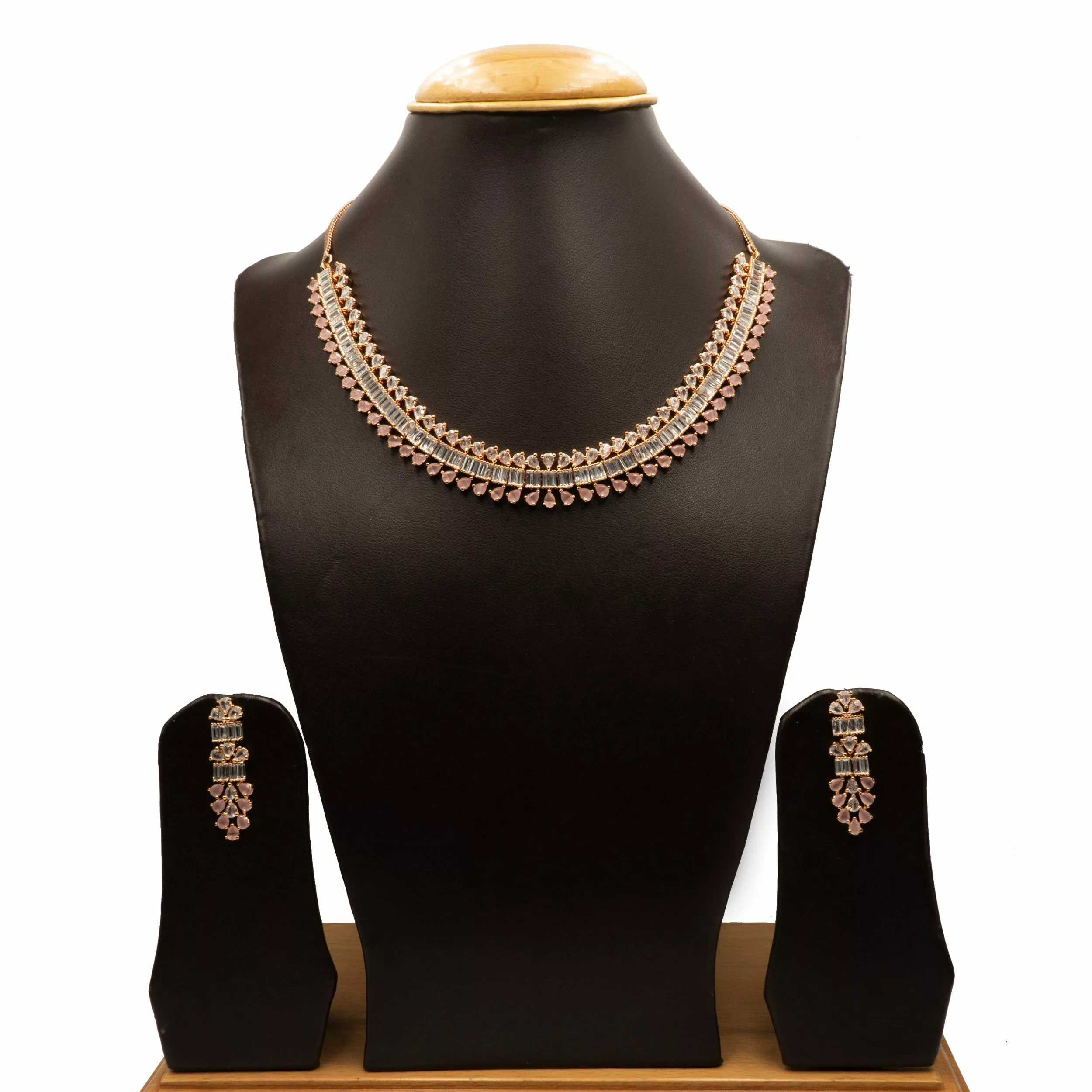 NS-2112008 - American Diamond Pink Stones Collar Necklace Set