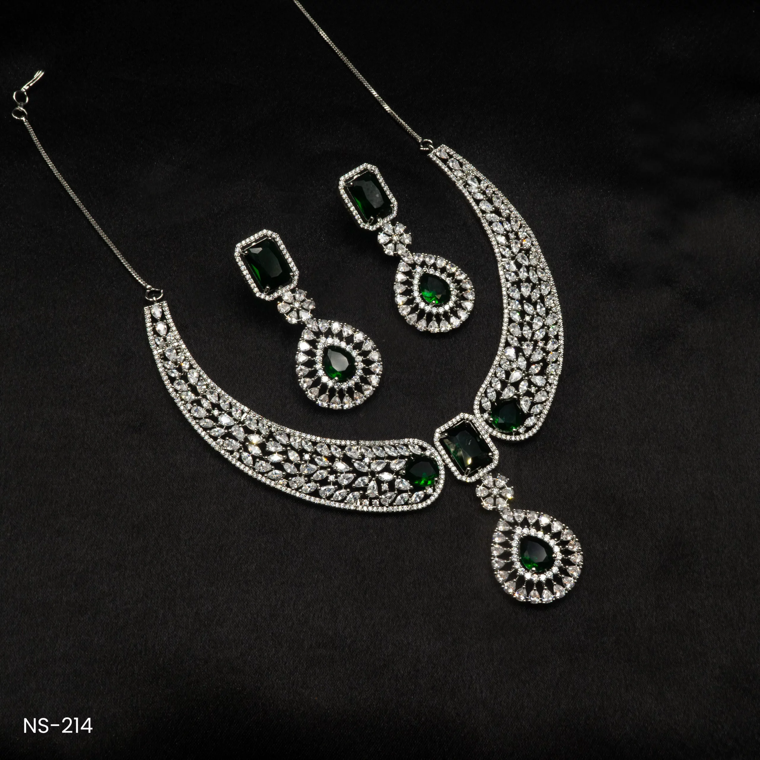 NS-214 – White Gold Plated Emerald Green American Diamond Party Jewelry Necklace Set