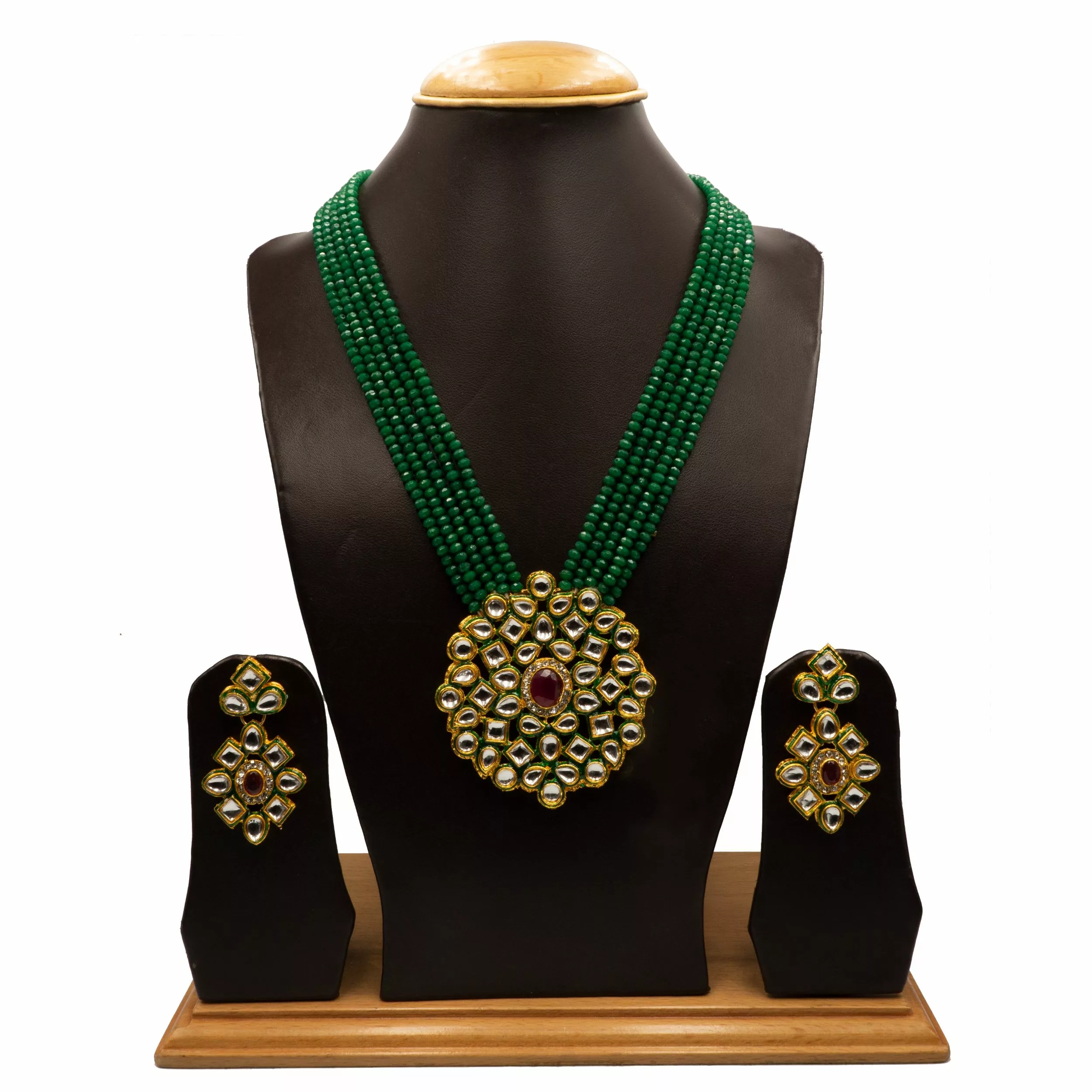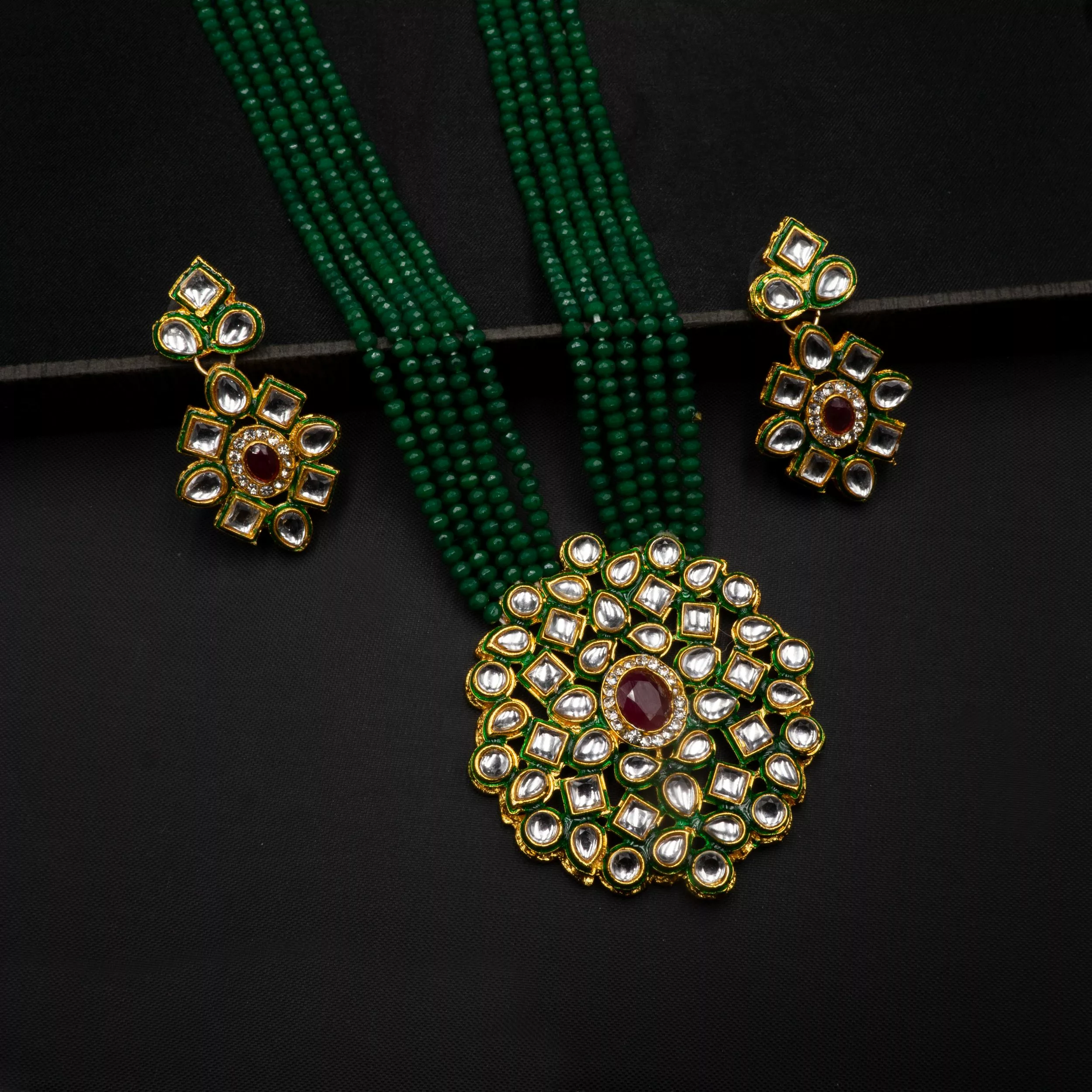 NS-2201003 – Kundan & Ruby Studded Green Crystal Necklace Set
