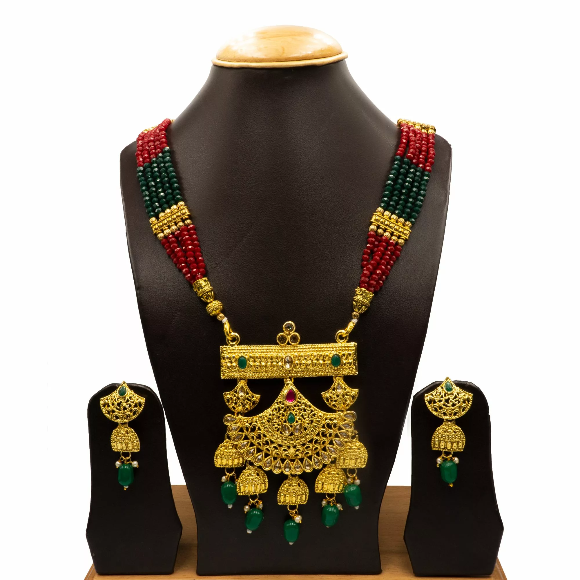 NS-2206005 – Gold Plated Long Multicolor Necklace Set