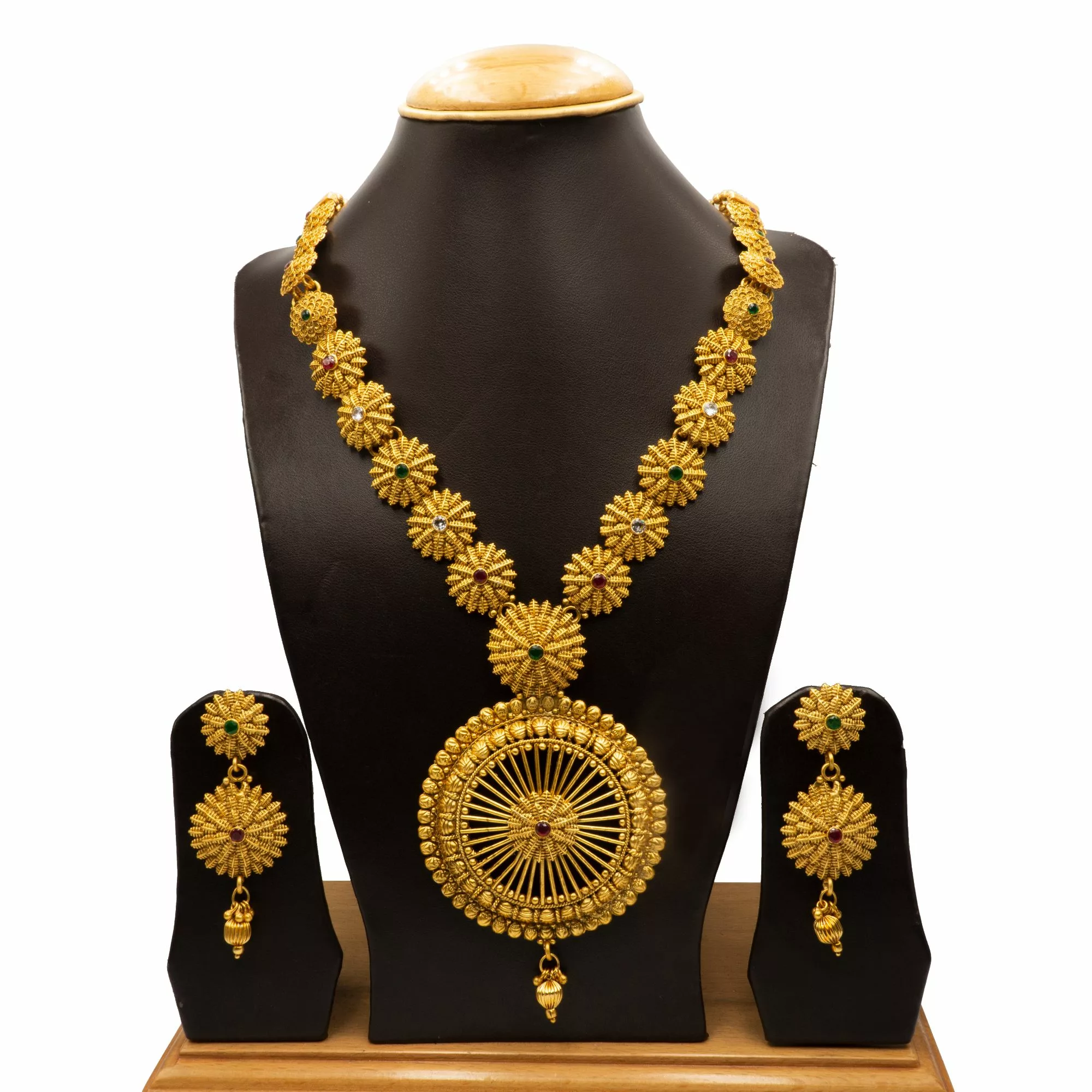 NS-2206013 - Gold Plated Traditional Long Temple Necklace