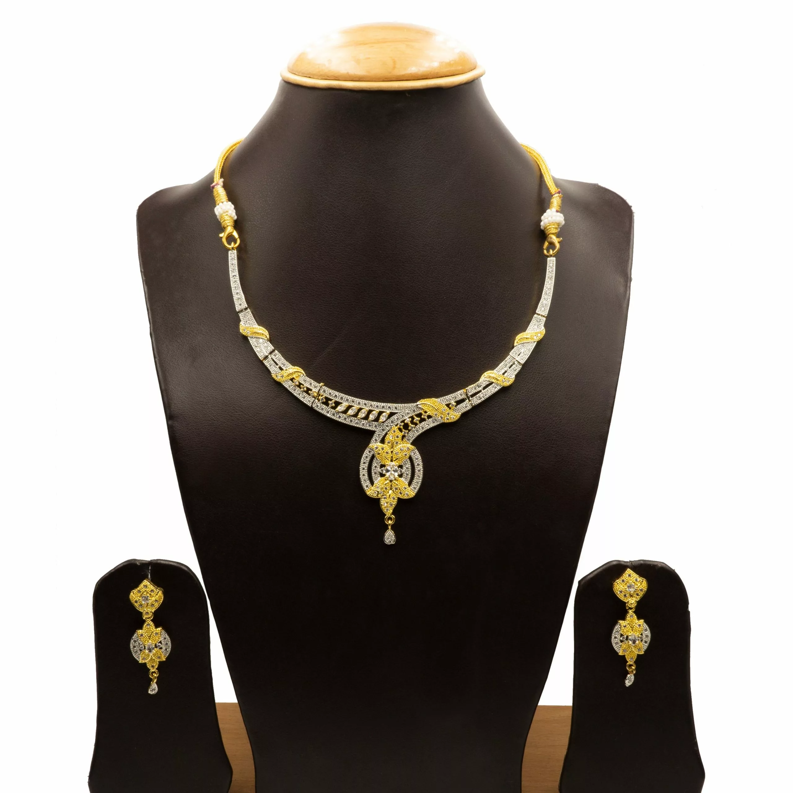 Tags: American Diamond, Brass, Cubic Zirconia, Gold Plated, Golden, Necklace, Necklace Set