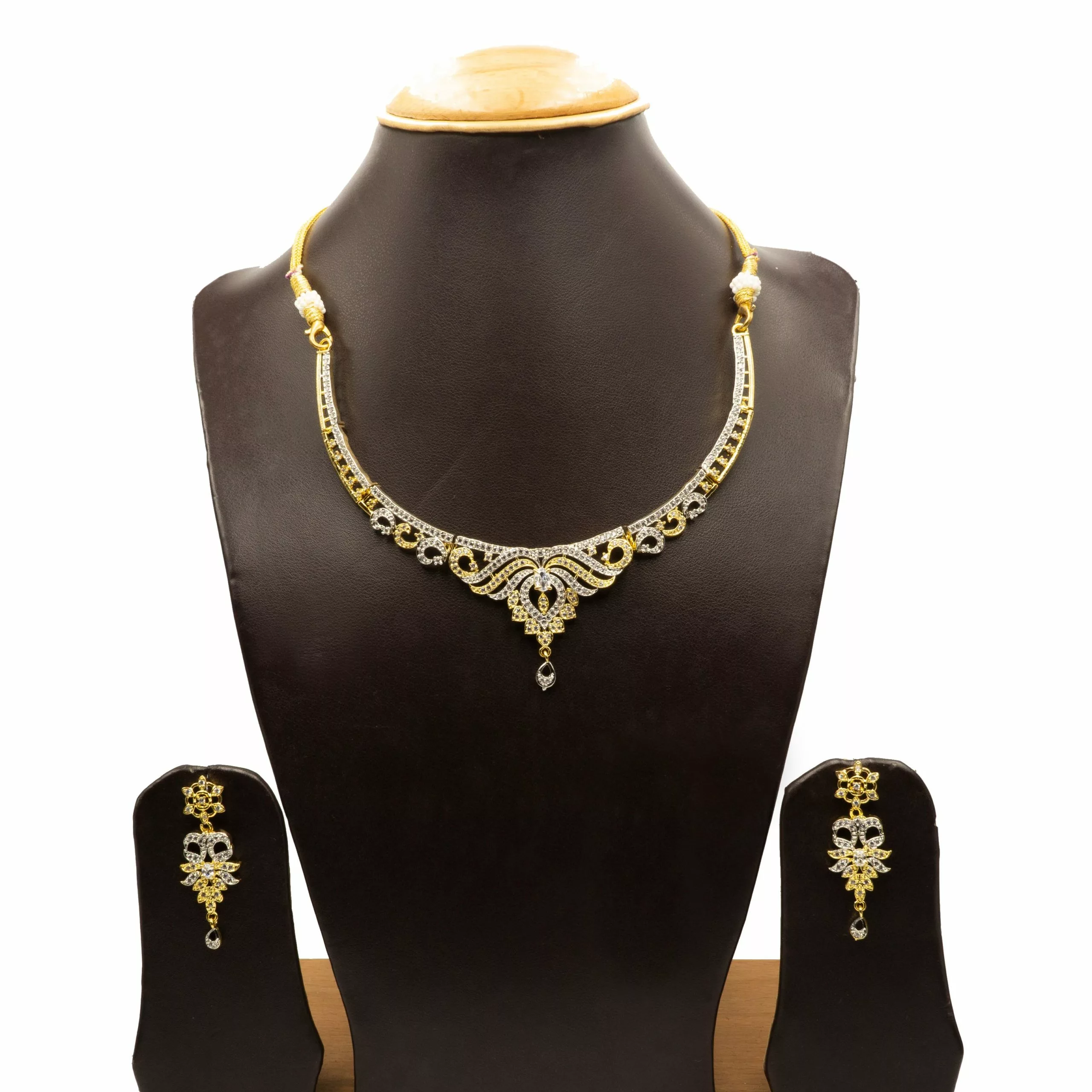 Tags: American Diamond, Brass, Cubic Zirconia, Gold Plated, Golden, Necklace, Necklace Set, White
