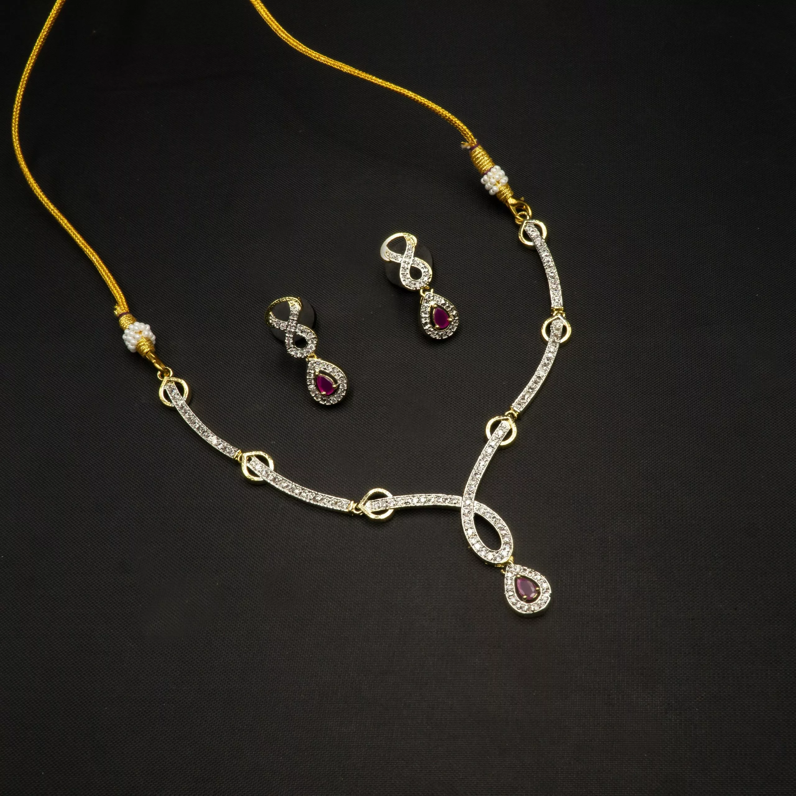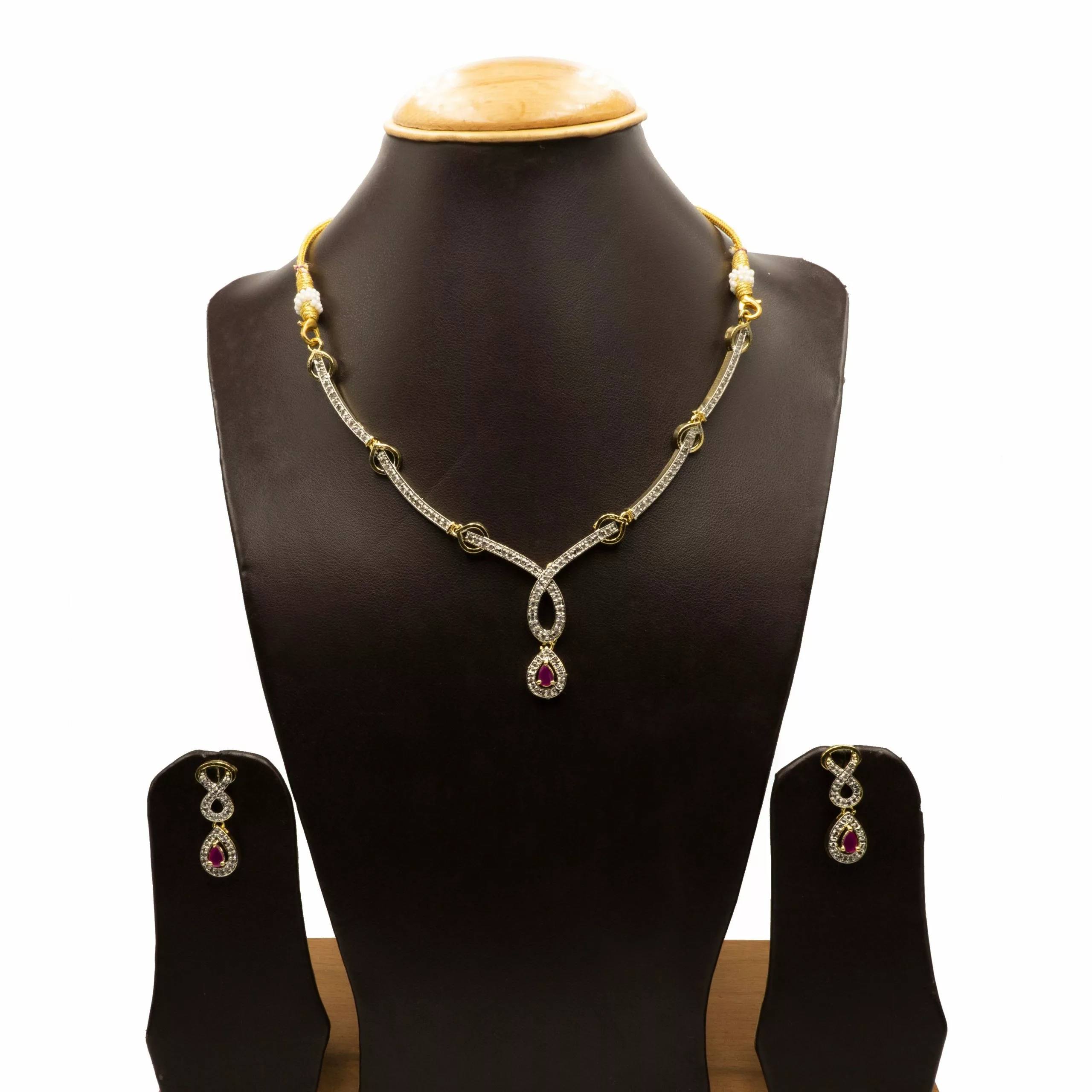 Tags: American Diamond, Brass, Cubic Zirconia, Gold Plated, Golden, Necklace, Necklace Set, Red, Ruby, White