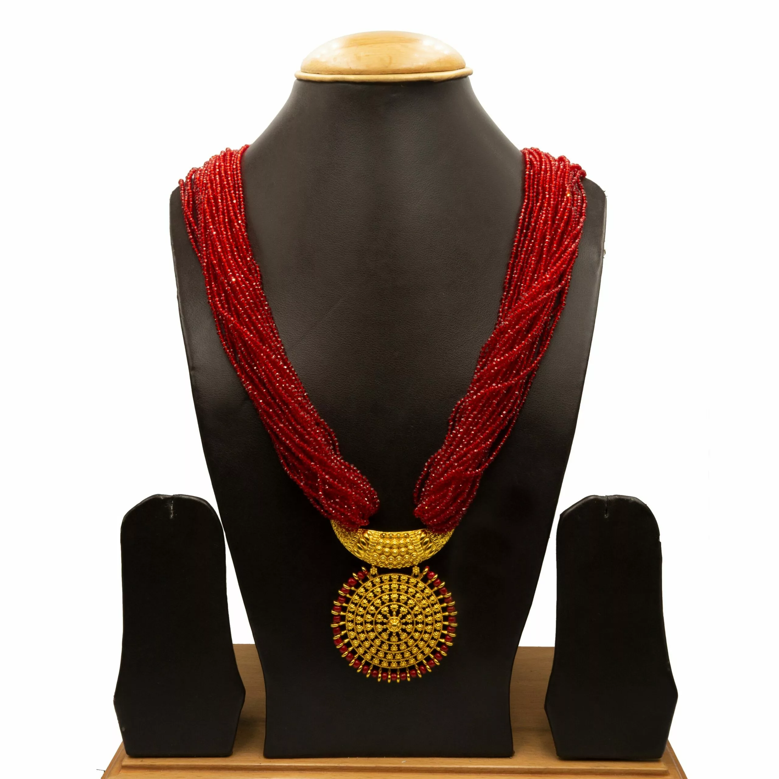 NS-2211006 – Gold Plated Long Necklace With Red Potey