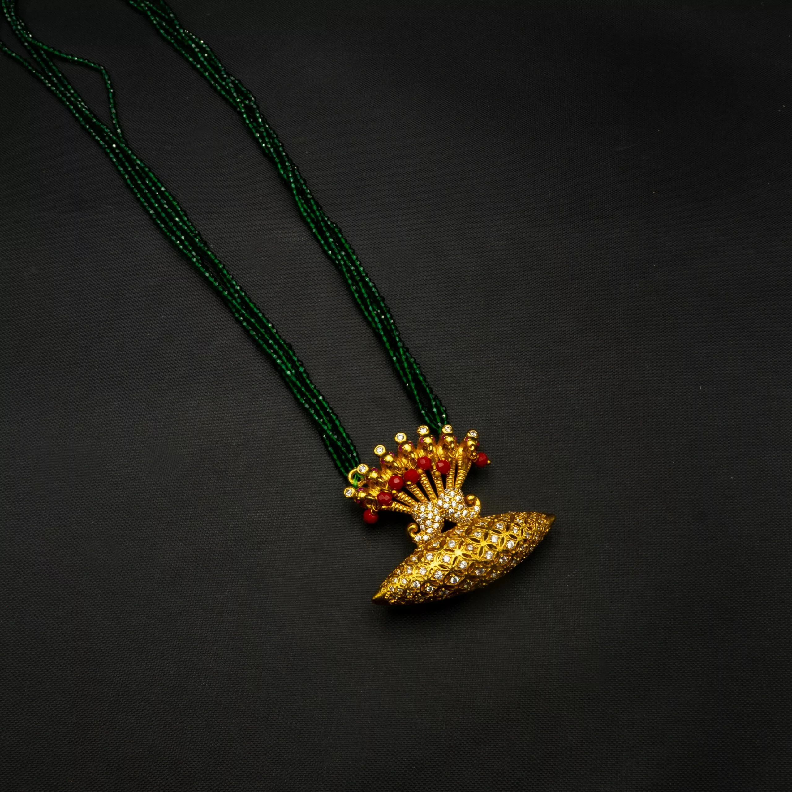 Tags: a, American Diamond, Brass, Cubic Zirconia, Gold Plated, Golden, Green, Multicolor, Navratna, Necklace, Necklace Set, Potey, Tayo