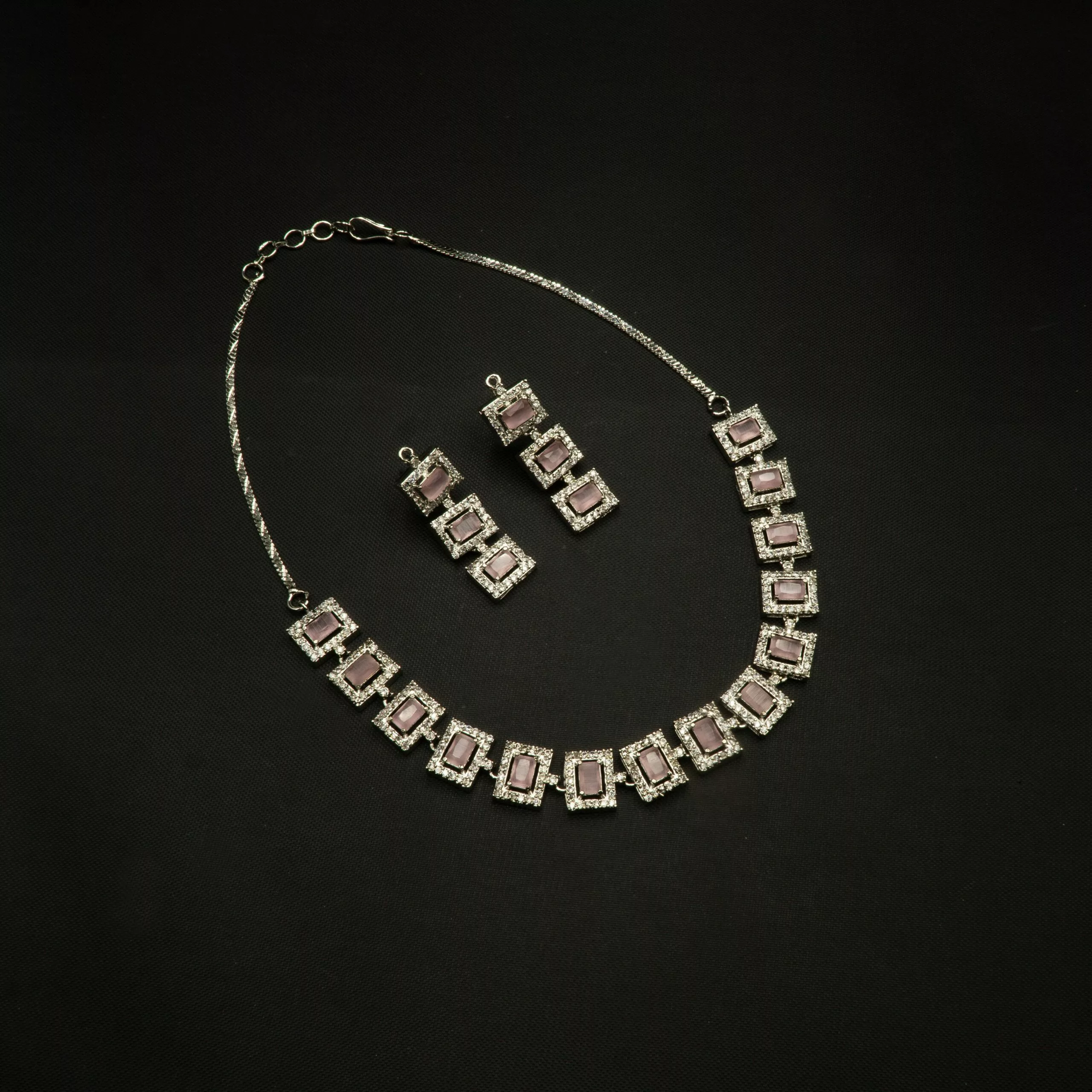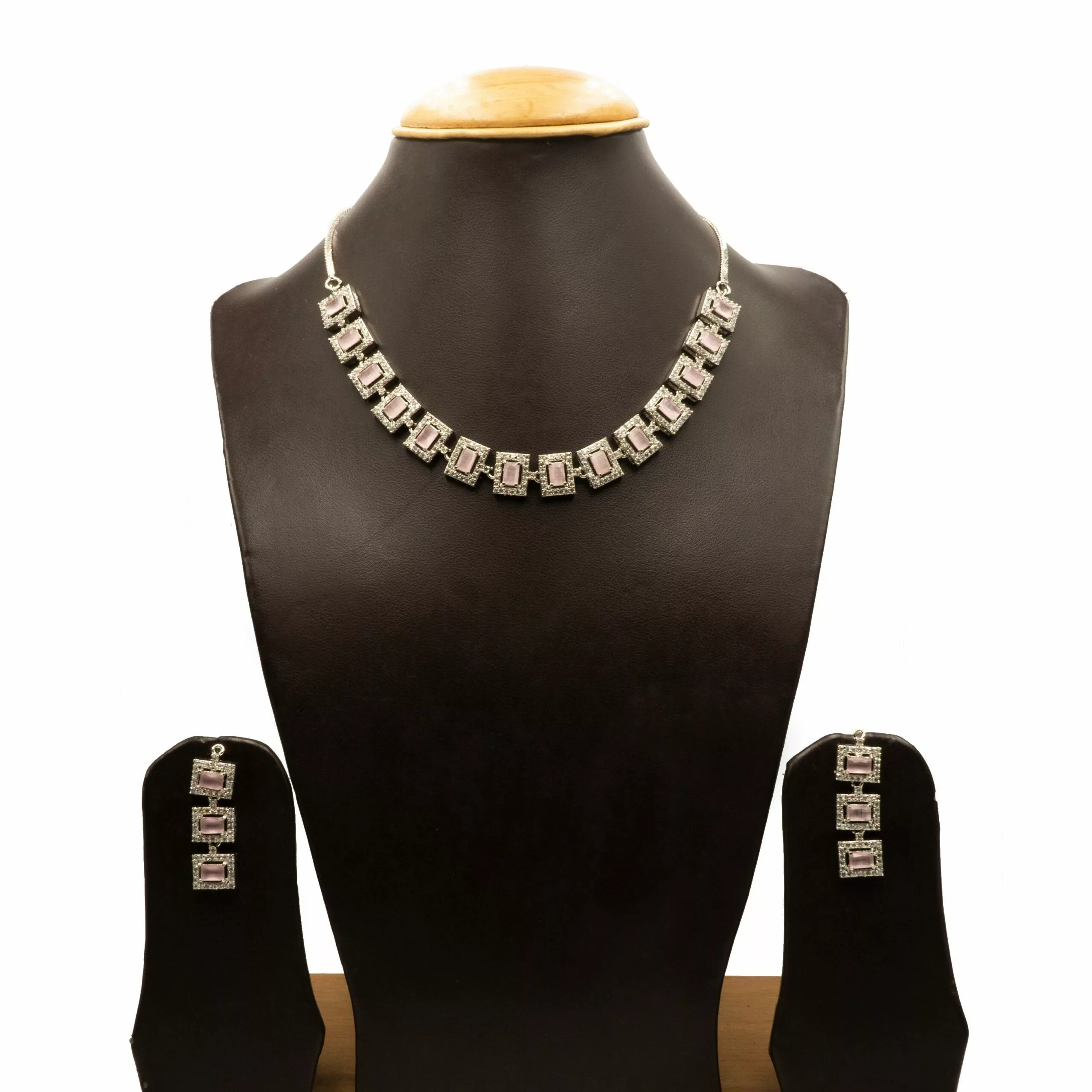 Tags: American Diamond, Brass, Cubic Zirconia, Necklace, Necklace Set, Pink, Pink Stones, White, White Gold, White Gold Plated