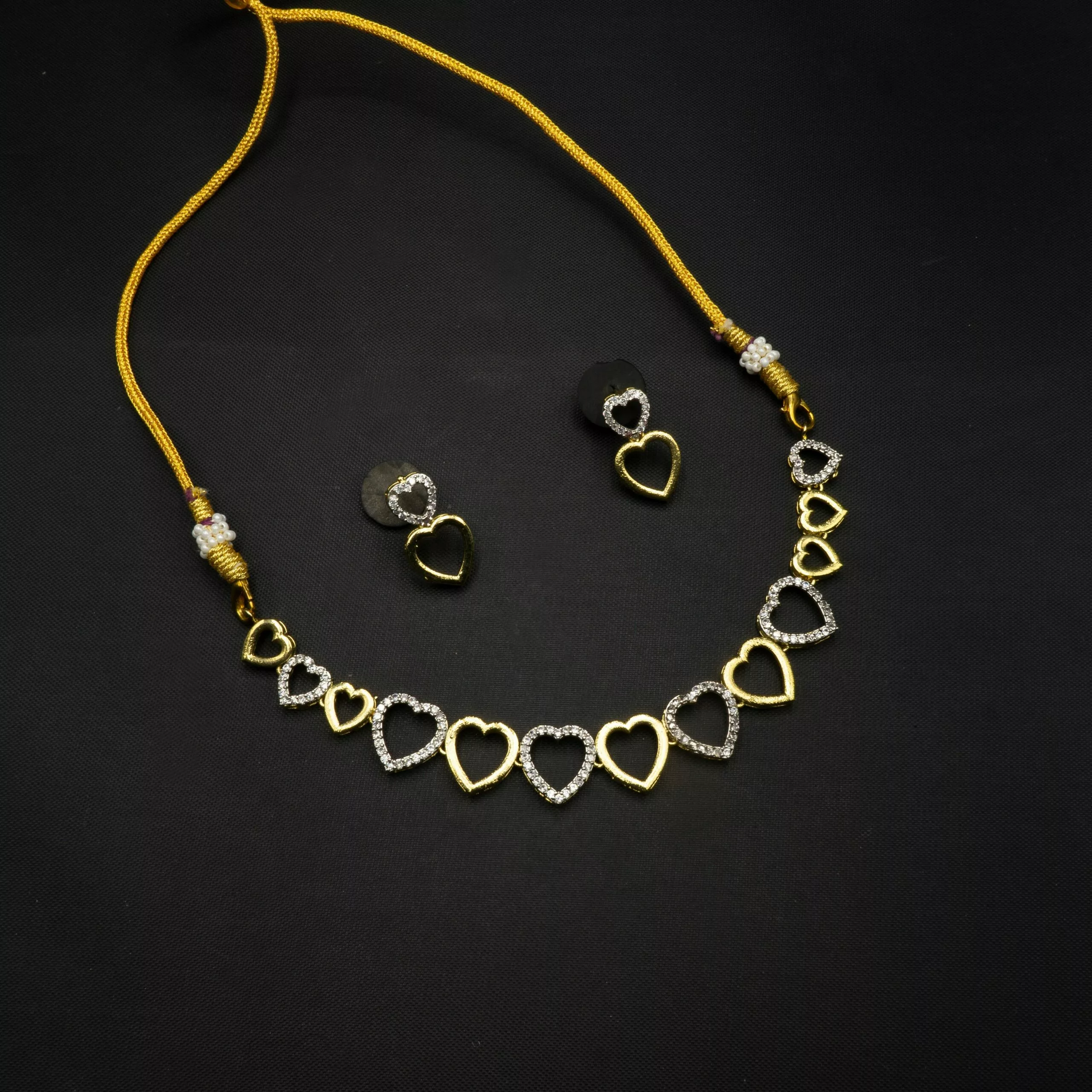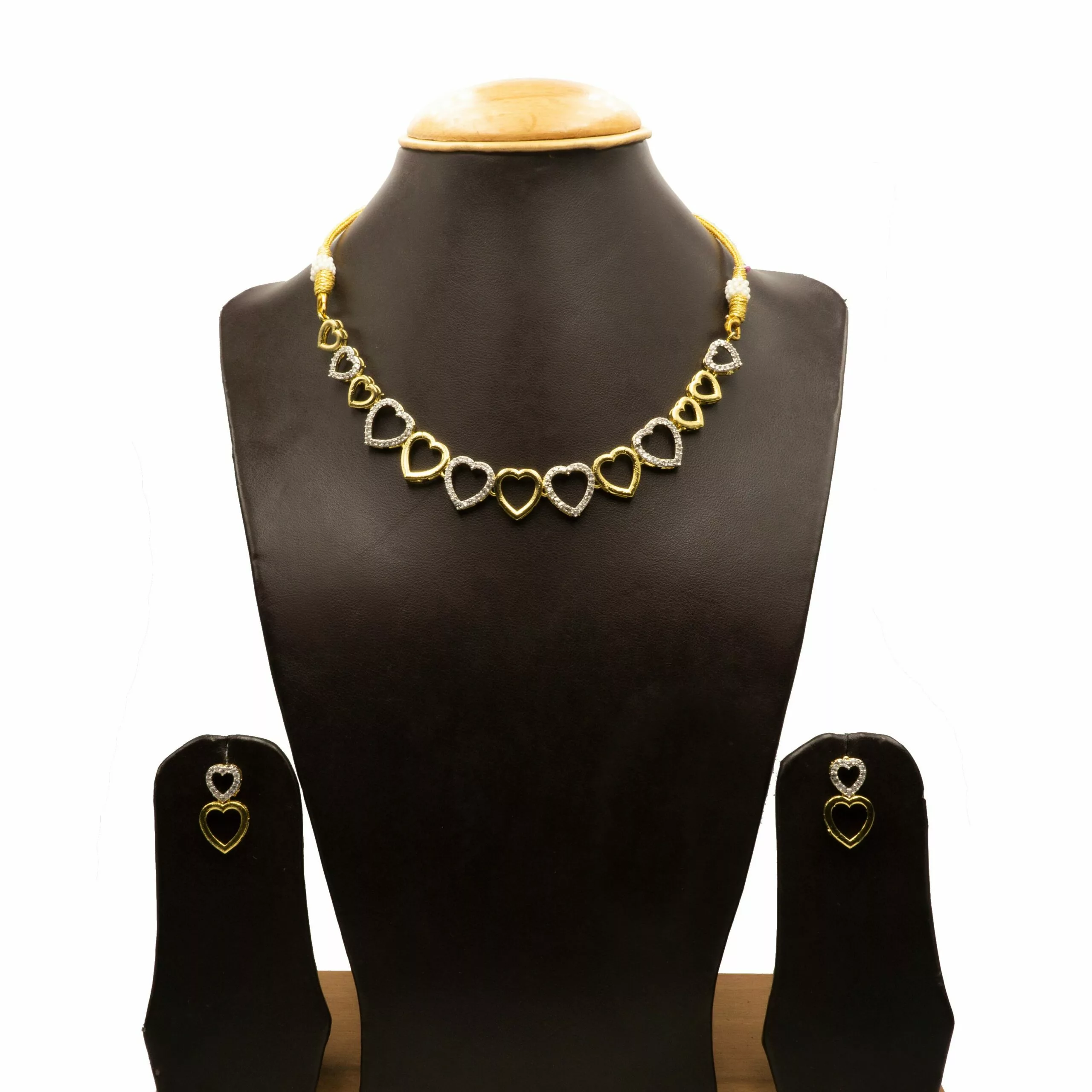 Tags: American Diamond, Brass, Cubic Zirconia, Gold Plated, Golden, Heart, Necklace, Necklace Set