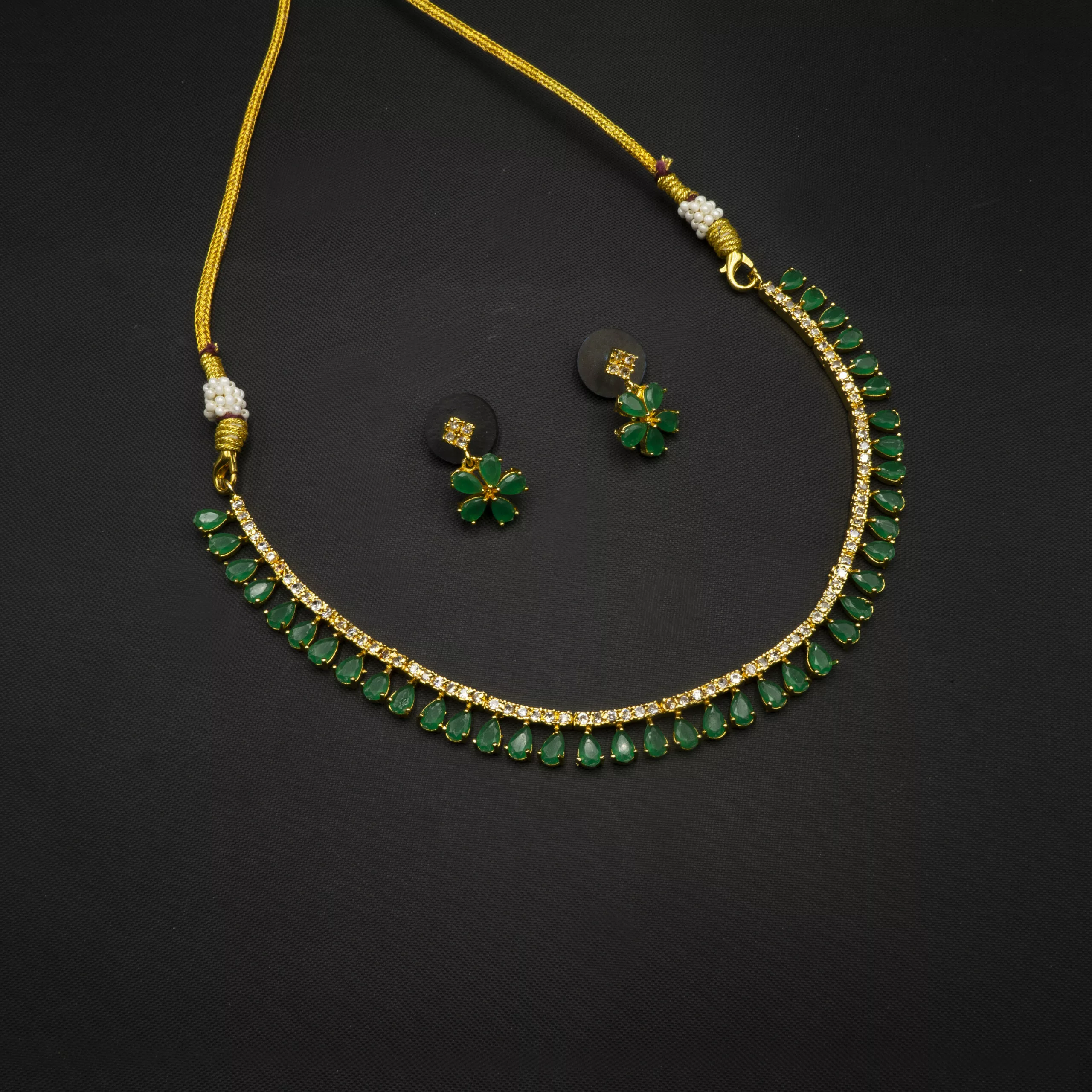 NS-2212027 – American Diamond Ecstatic Emerald Green Necklace Set
