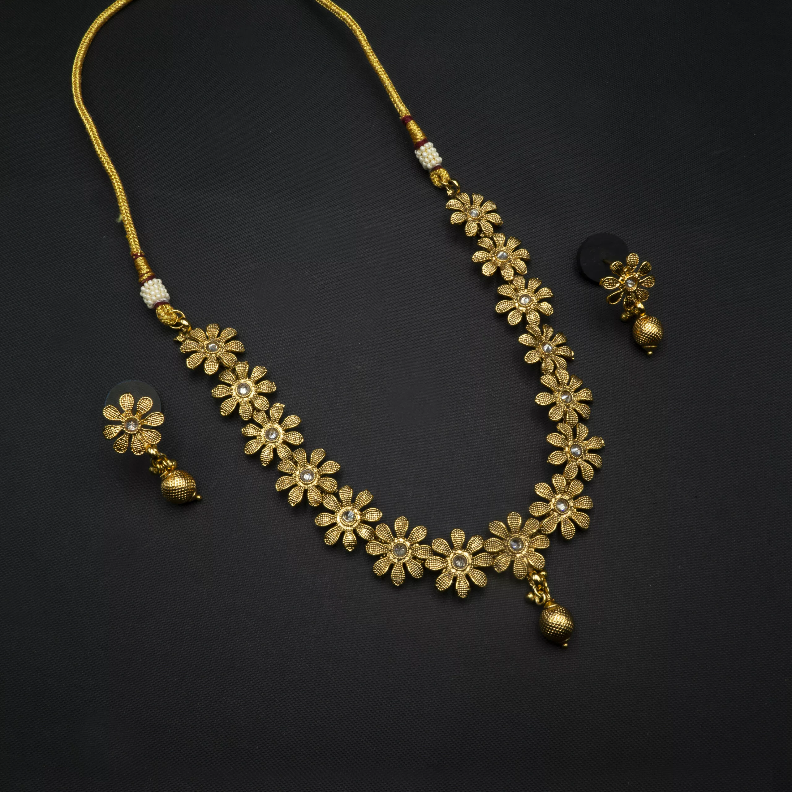 NS-2212028 – Antique Gold Finish Temple Necklace Set