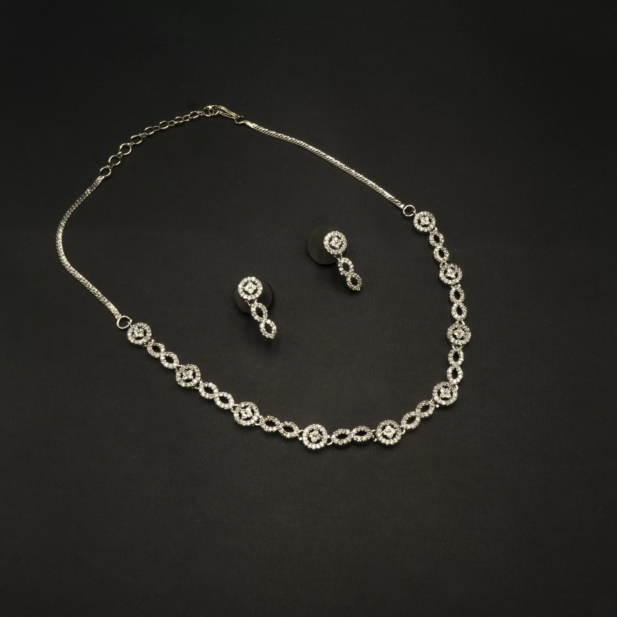 NS-2302030 – Minimal Contemporary American Diamond Necklace Set