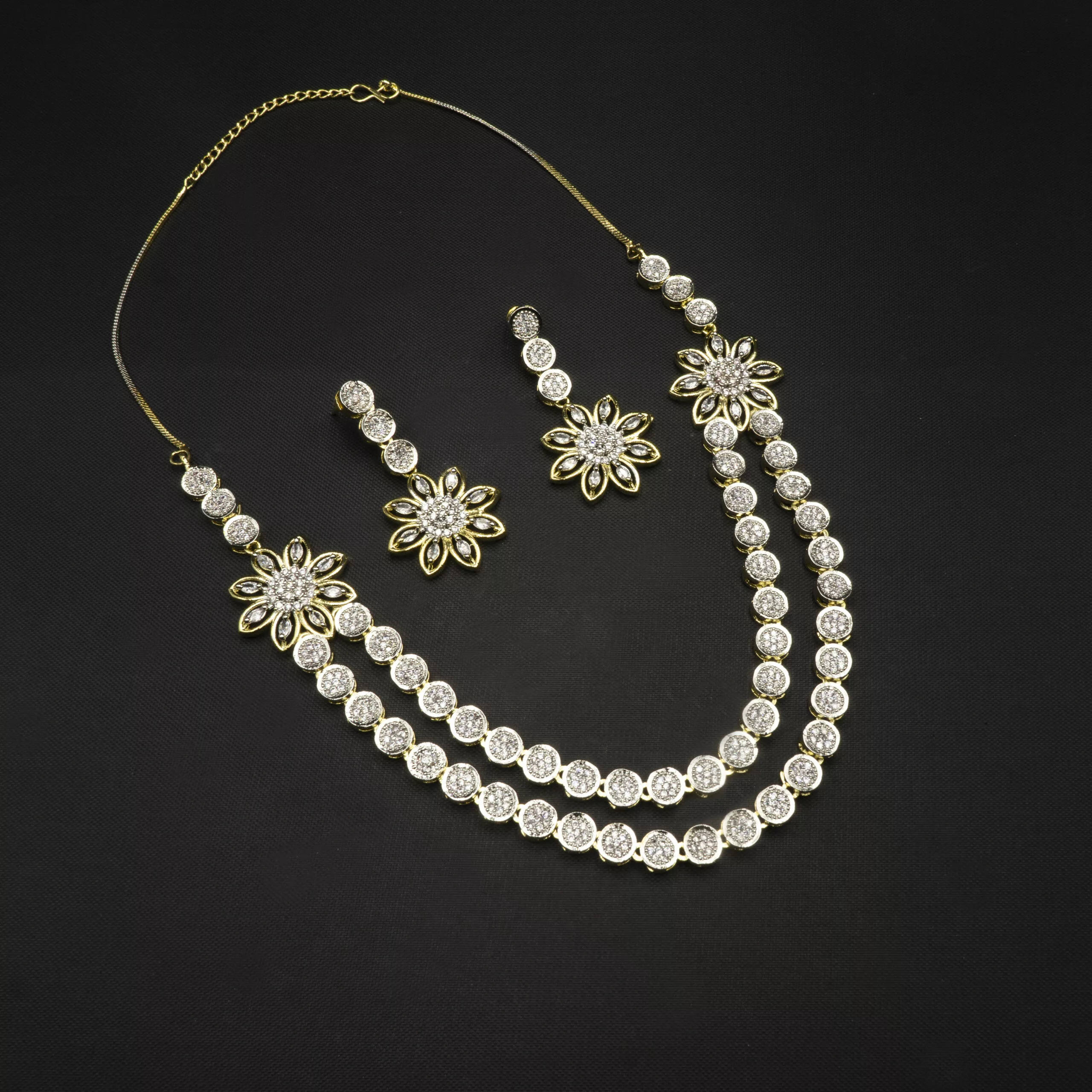 NS-2302033 – Delightful Double Layered American Diamond Necklace Set