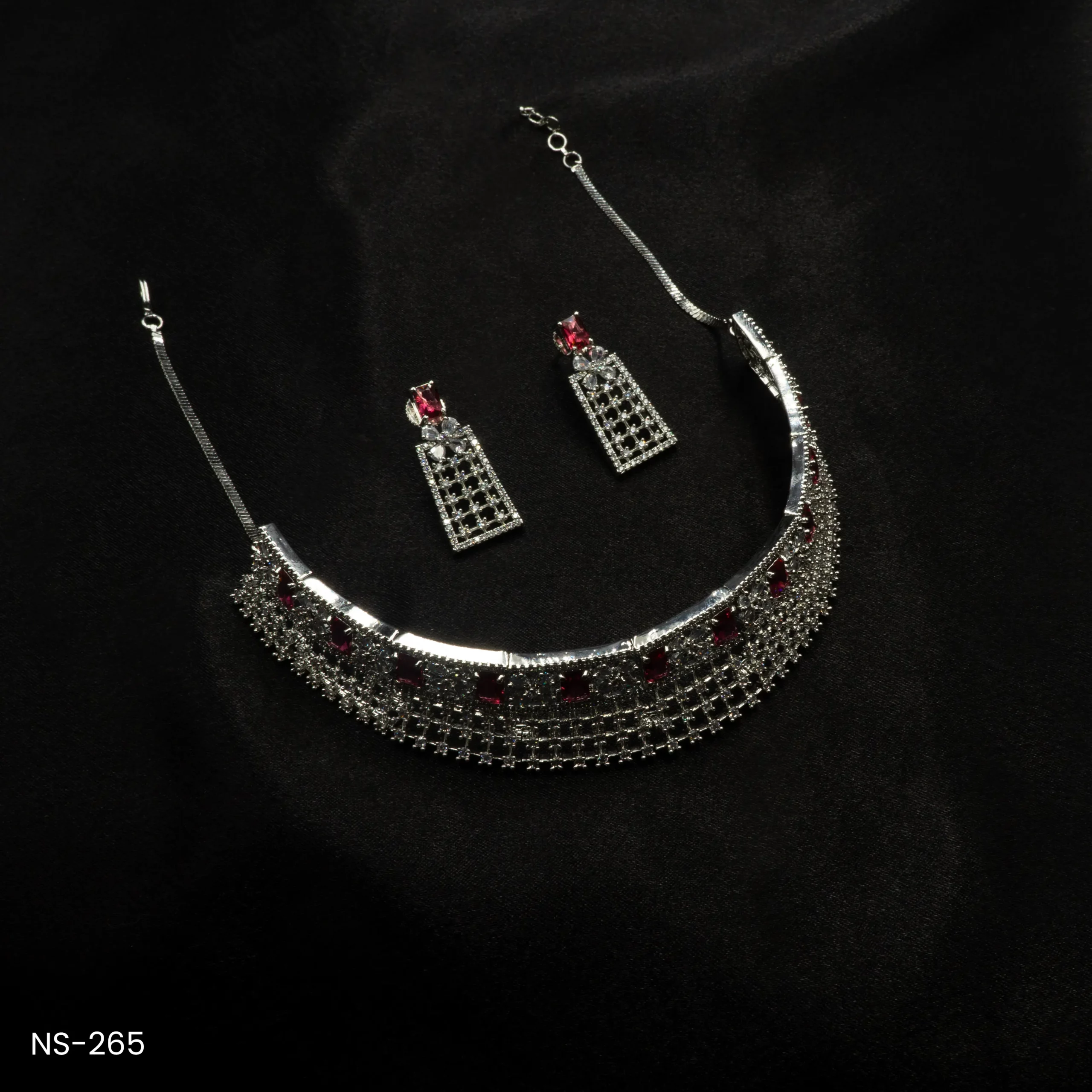 NS-265 – Glam Nights Bold Sophistication Ruby Red American Diamond Choker Set