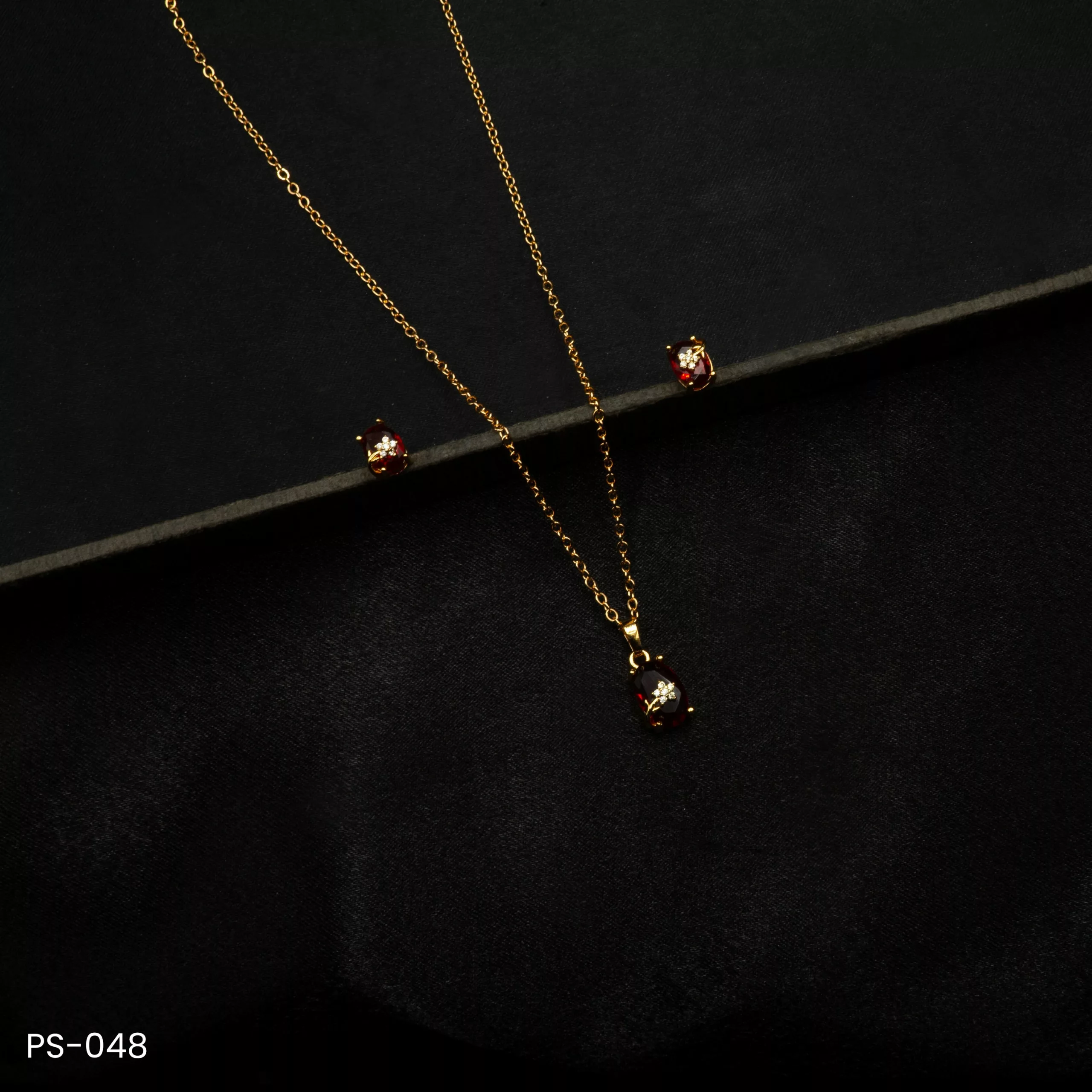 Be the first to review “PS-048 – Effortless Glamour Gold Plated American Diamond & Ruby Flower Pendant Set” Cancel reply