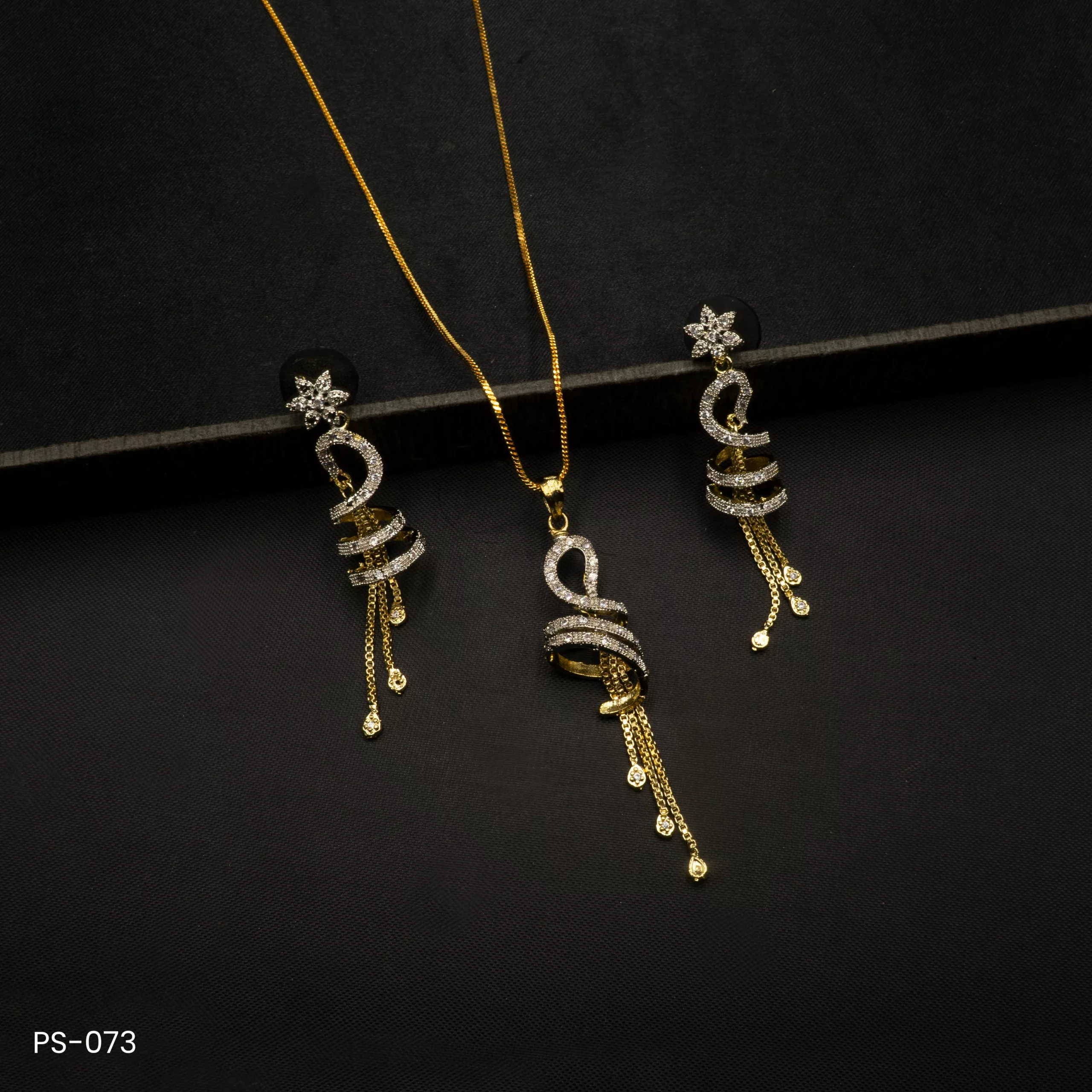 PS-073 – American Diamond Contemporary Spiral Pendant Set