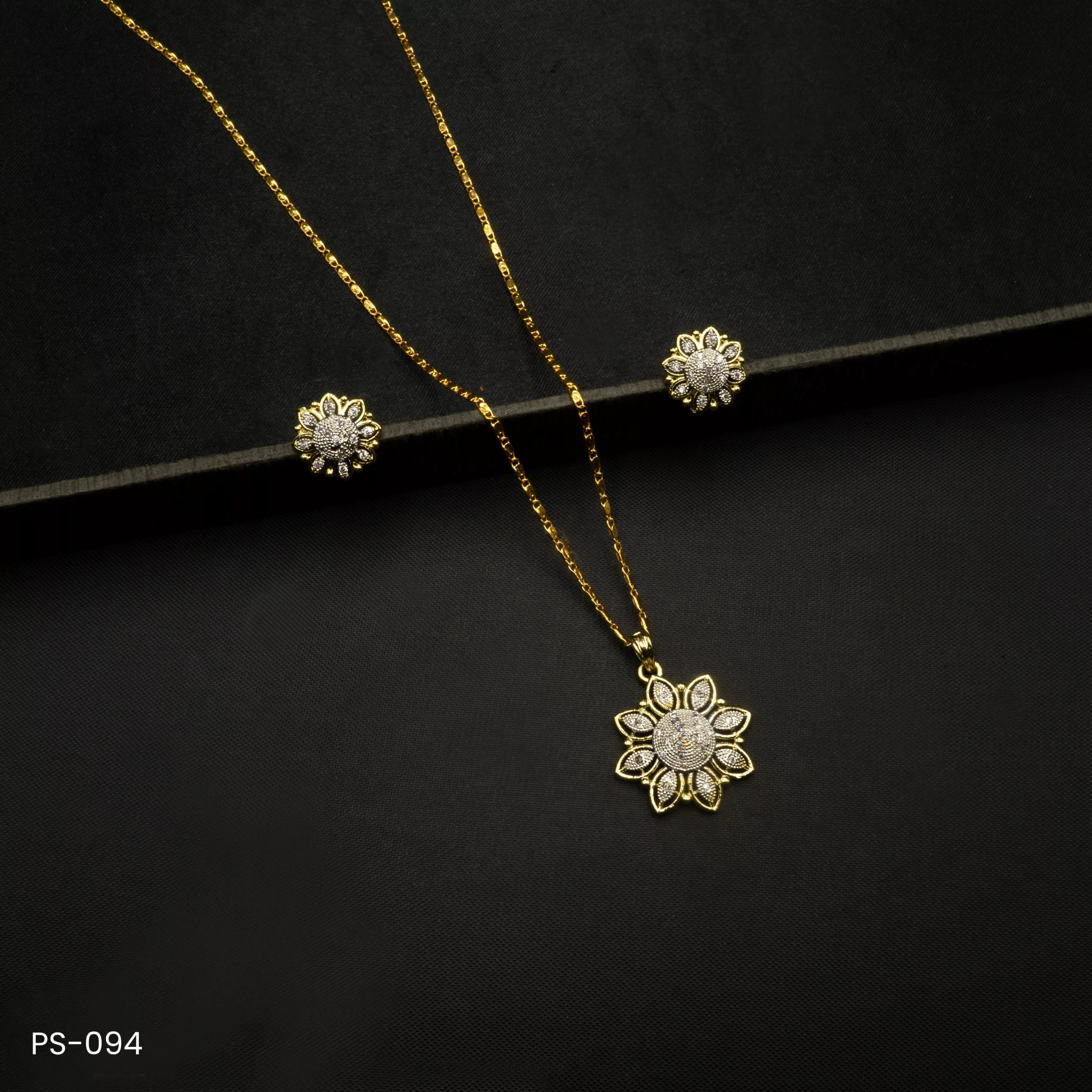 PS-094 – American Diamond Contemporary Flower Pendant Set