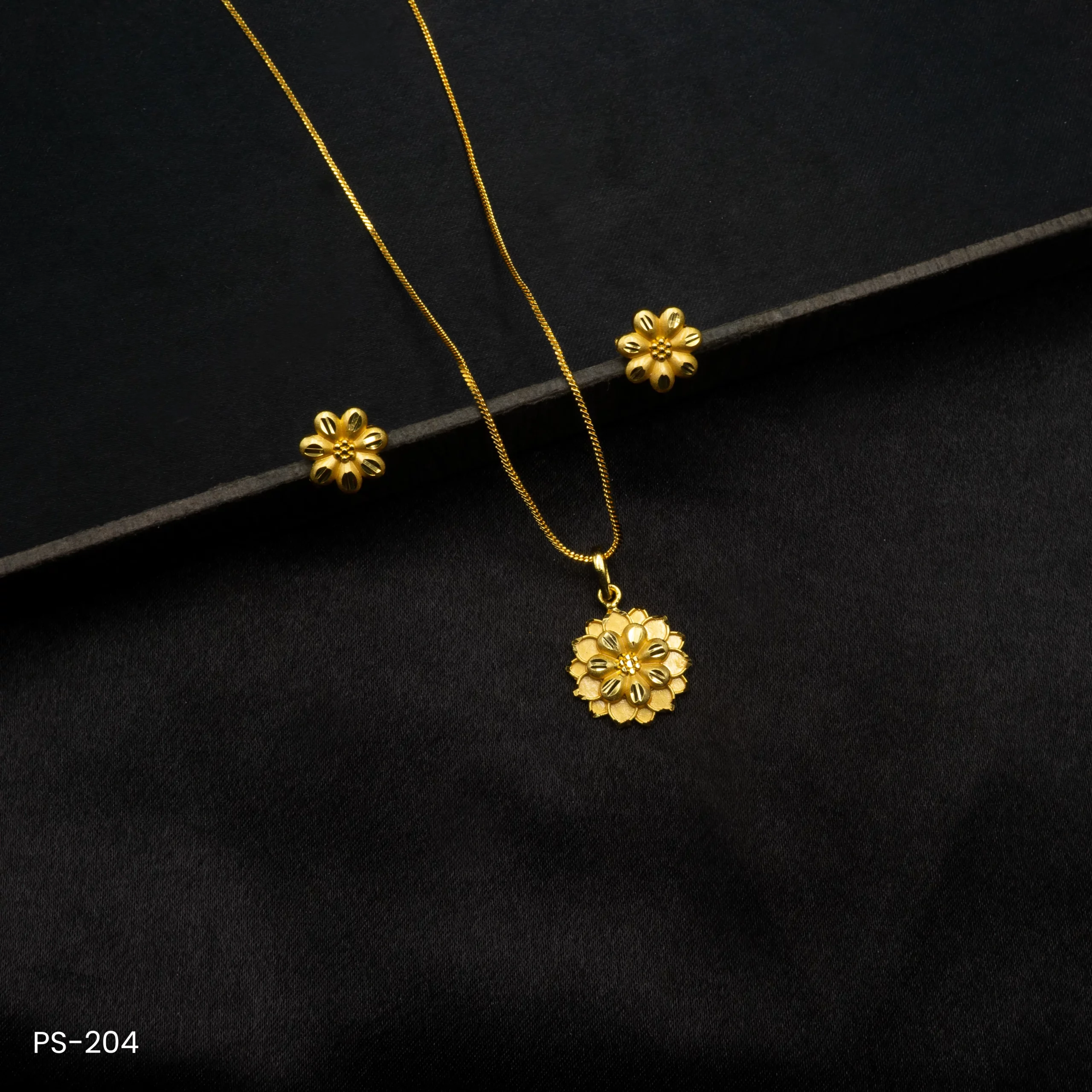 PS-203 - Elegant Gold Plated Floral Pendant Necklace with Earrings