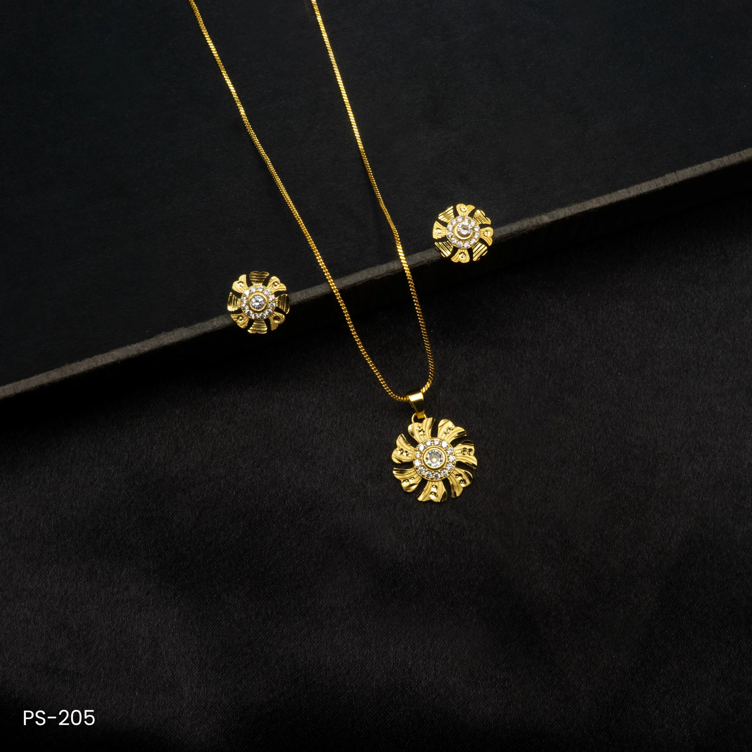 PS-205 – Exquisite Gold Plated American Diamond Contemporary Floral Pendant Jewellery Set