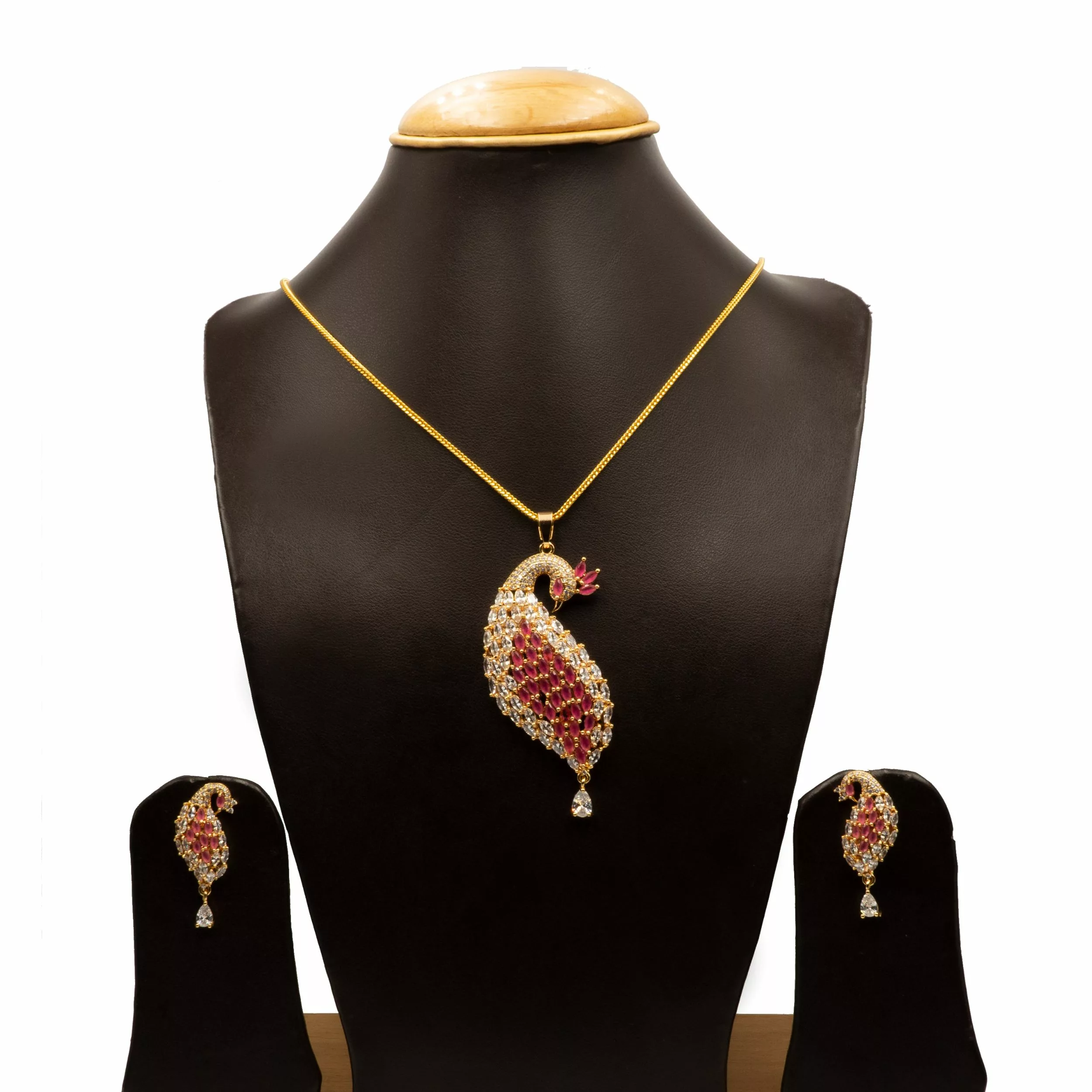 PS-2109009 – American Diamond Ruby Studded Bird Pendant Set
