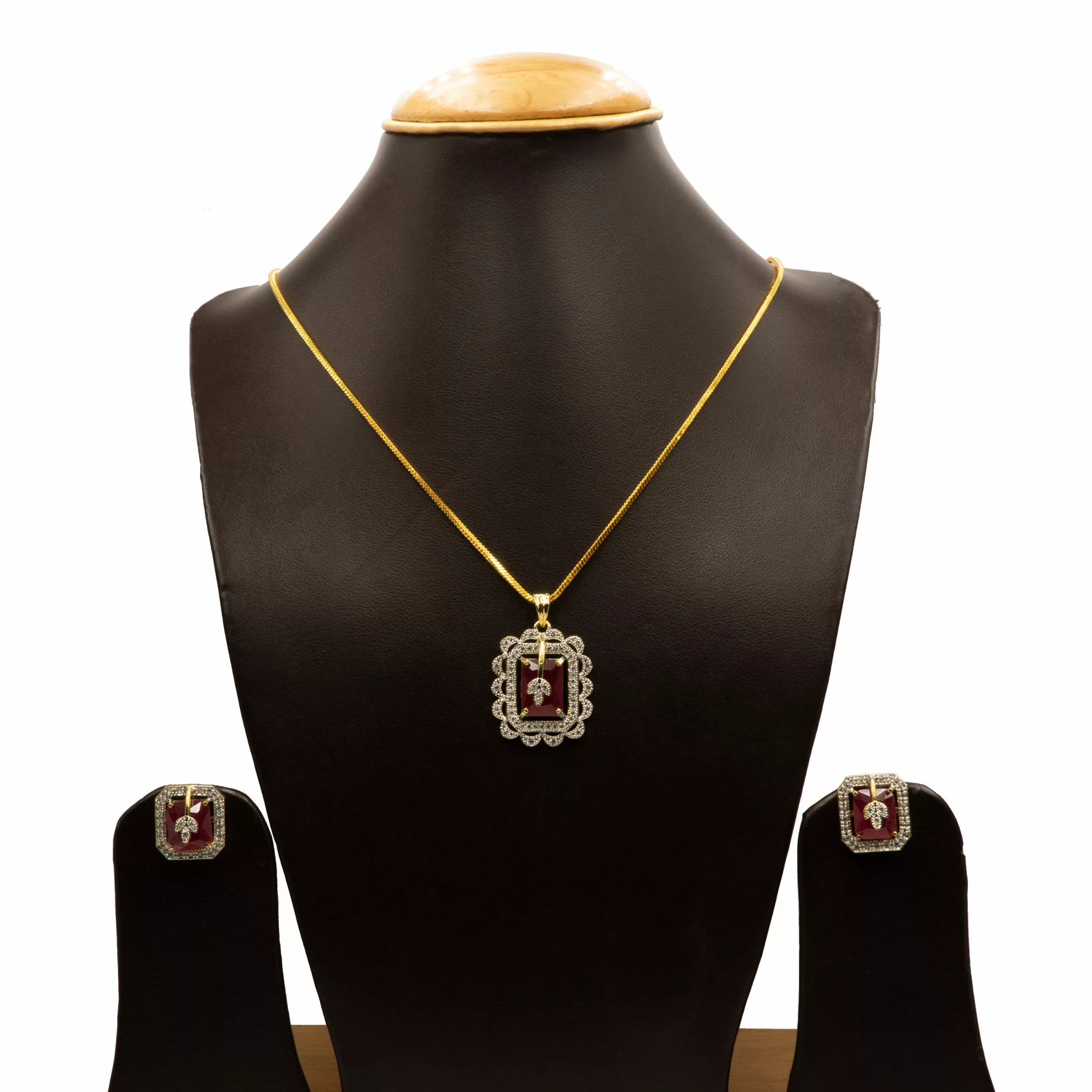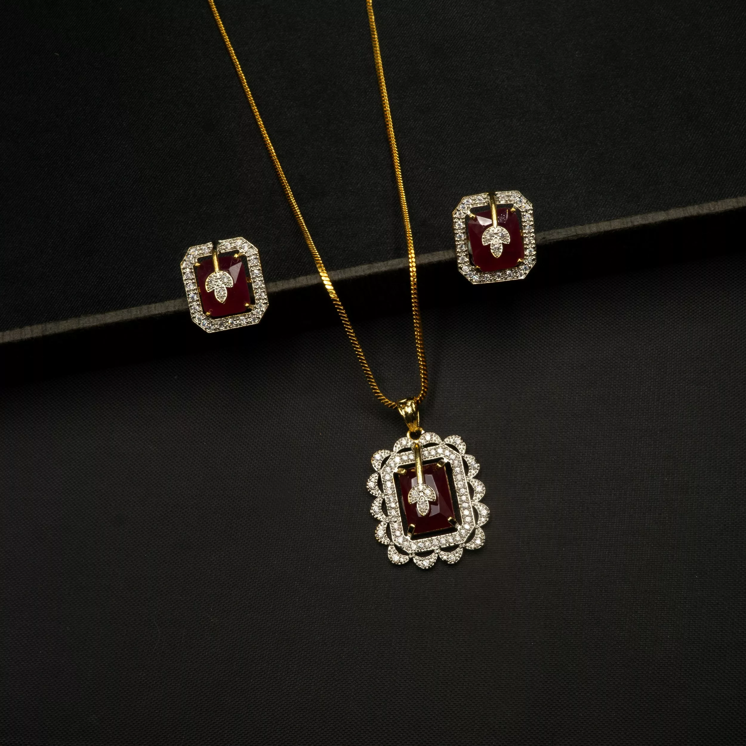 PS-2111005 – Radiant Ruby American Diamond Pendant Set