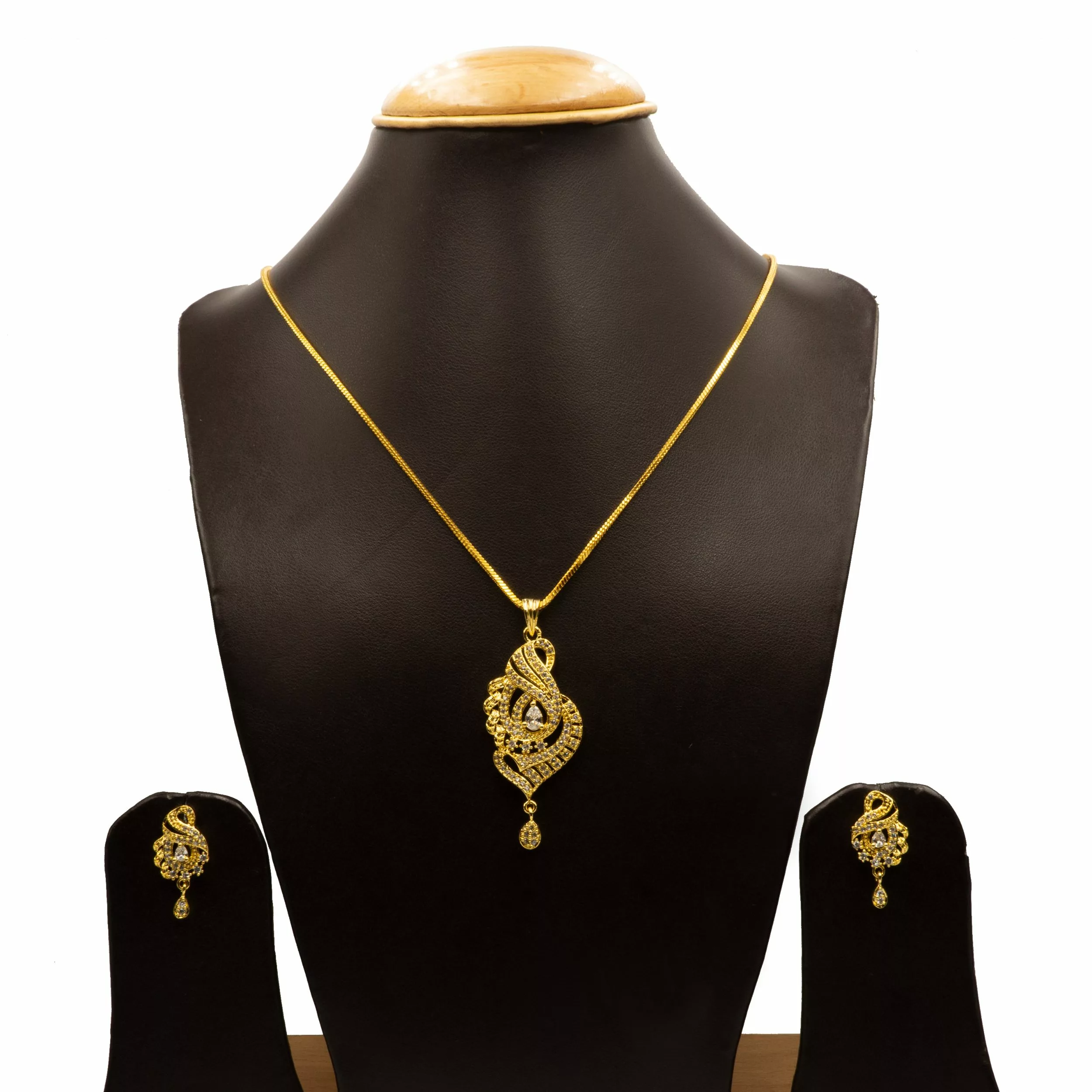 PS-2111011 – American Diamond Gold Plated Pendant Set