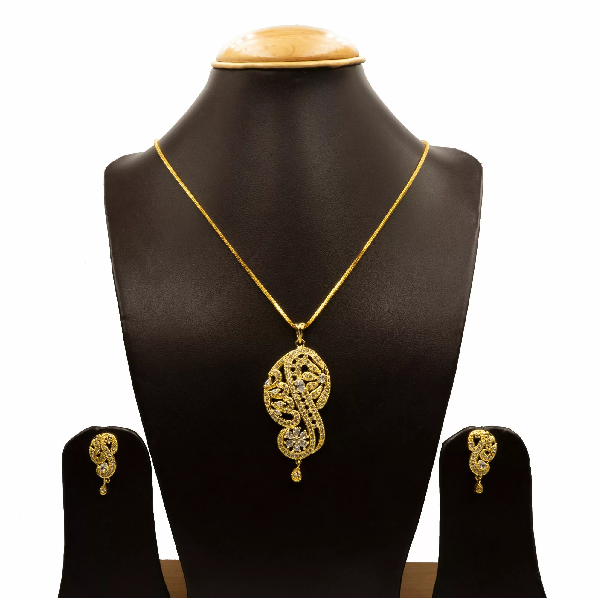 Tags: American Diamond, Brass, Cubic Zirconia, Gold Plated, Golden, Locket, Locket Set, Necklace, Necklace Set, Pendant, Pendant Set
