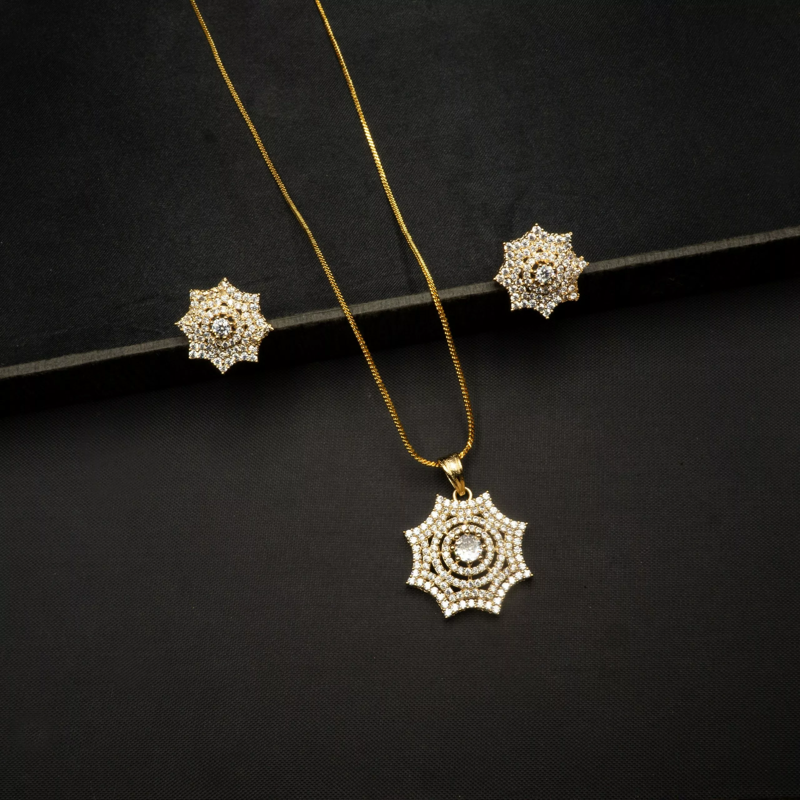 PS-2207004 – Gold Plated American Diamond Pendant Set