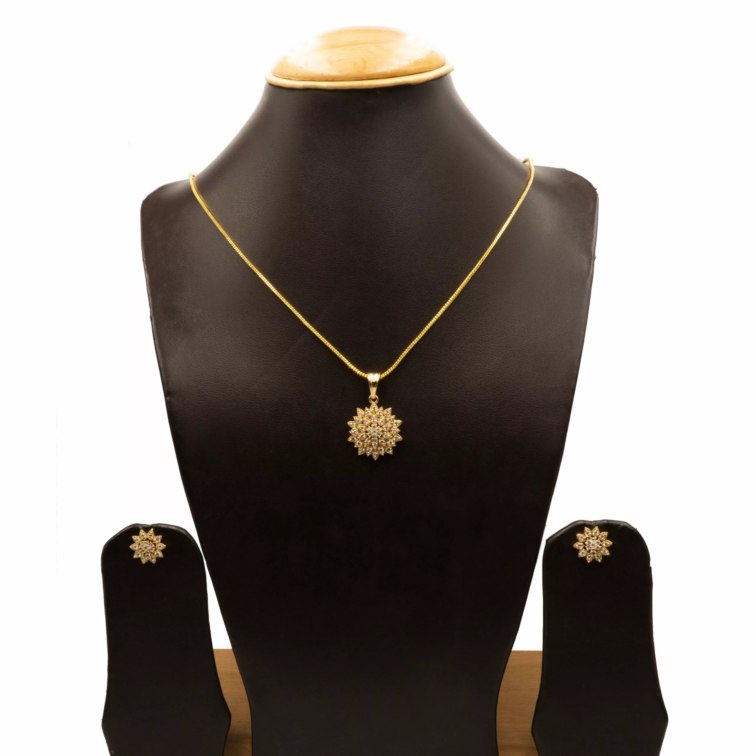 Tags: American Diamond, Brass, Cubic Zirconia, Flower, Gold Plated, Golden, Locket, Locket Set, Necklace, Necklace Set, Pendant, Pendant Set
