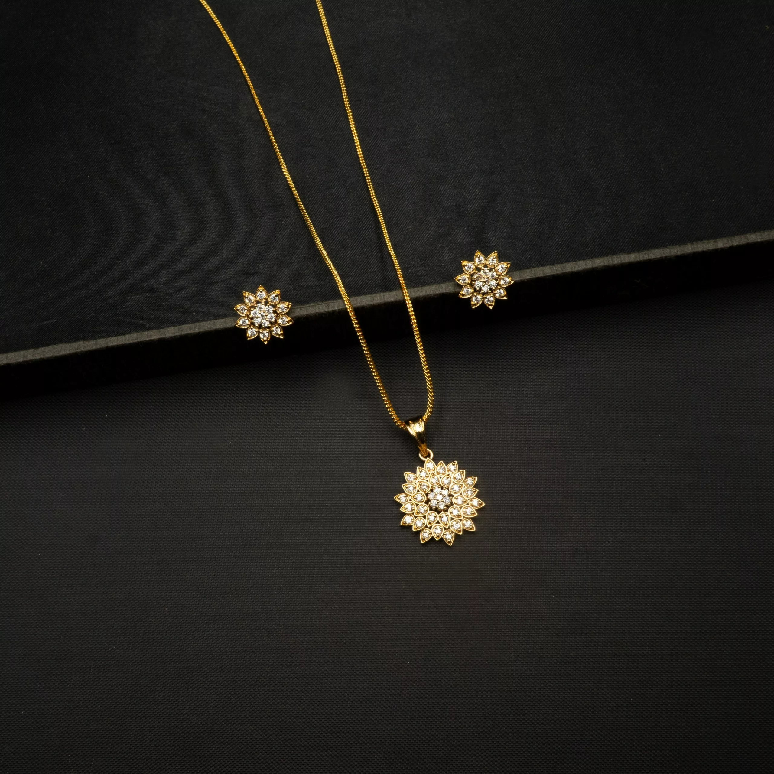 PS-2207007 – Gold Plated Contemporary Flower AD Pendant Set