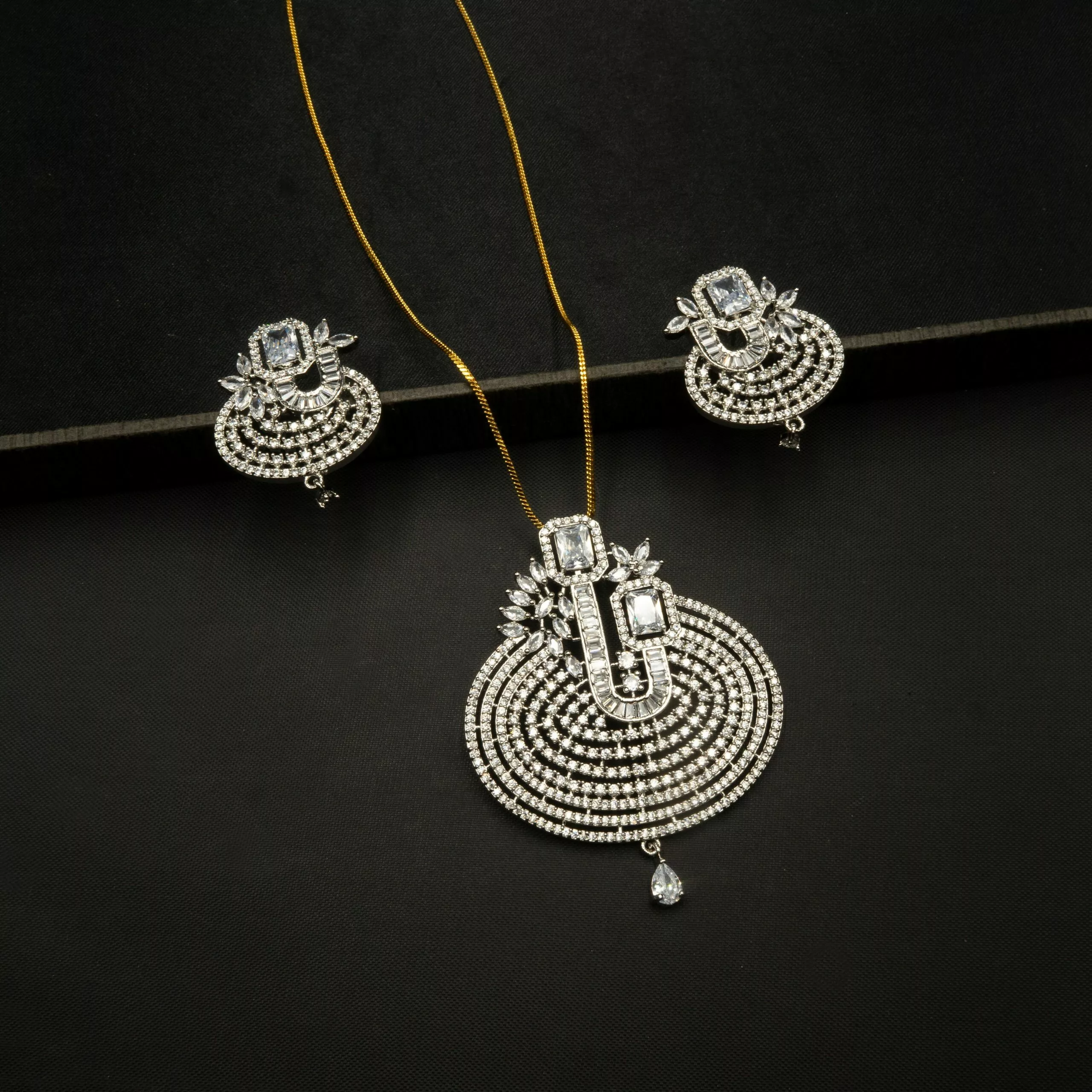 Tags: American Diamond, Brass, Cubic Zirconia, Locket, Locket Set, Necklace, Necklace Set, Pendant, Pendant Set, Statement, White, White Gold, White Gold Plated
