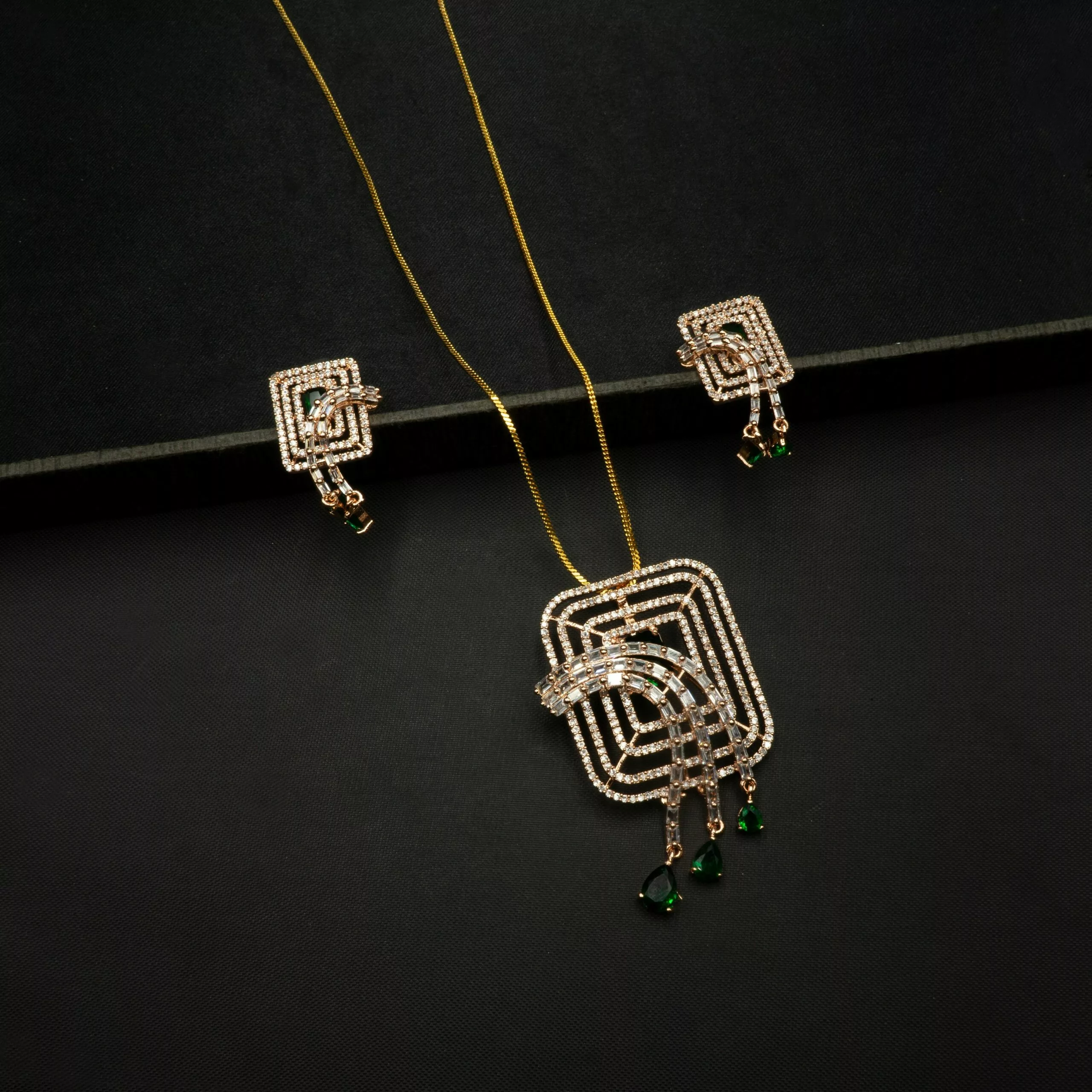 PS-2212005 – Rose Gold Plated American Diamond Contemporary Statement Pendant Set