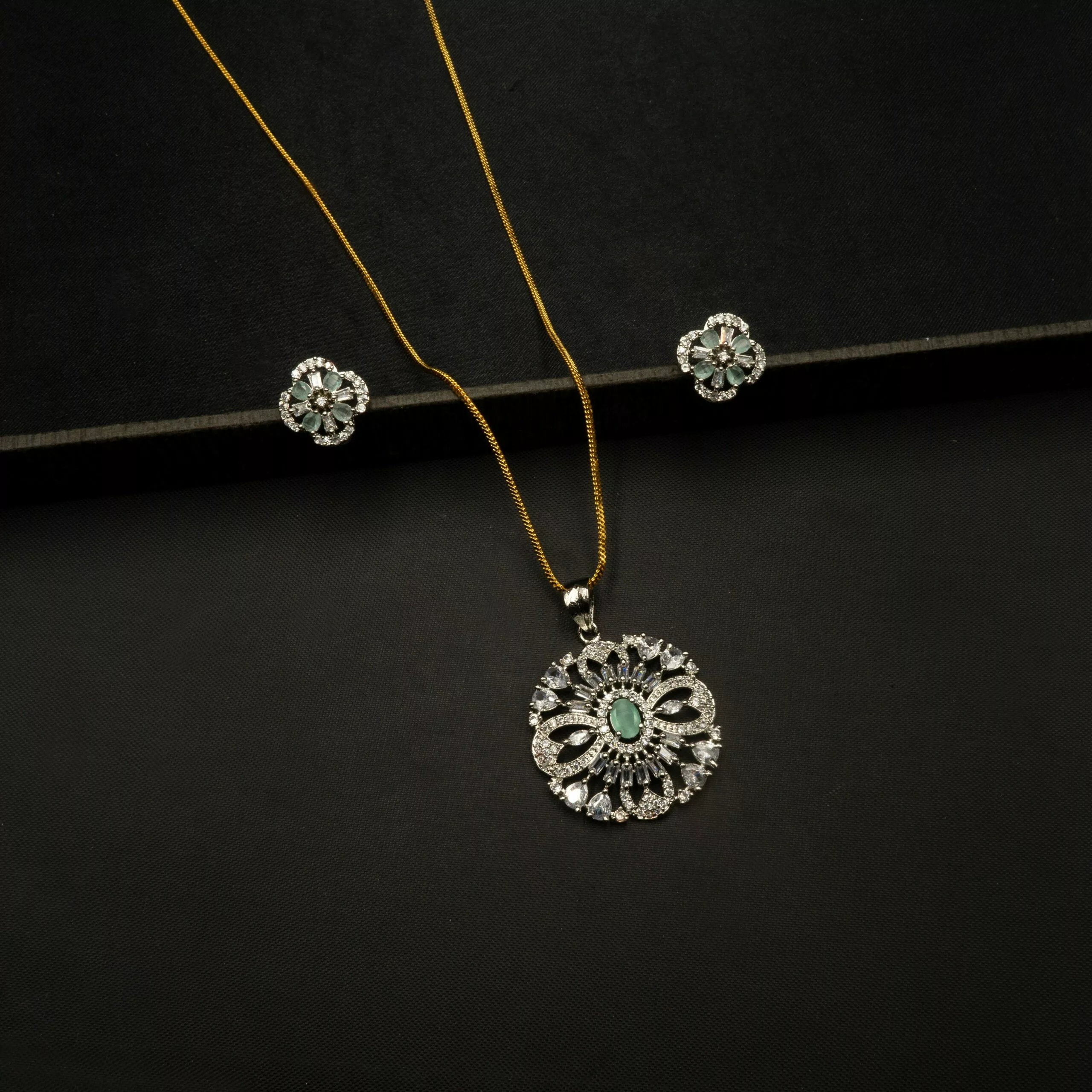 PS-2212015 – American Diamond Mint Stones Pendant Set