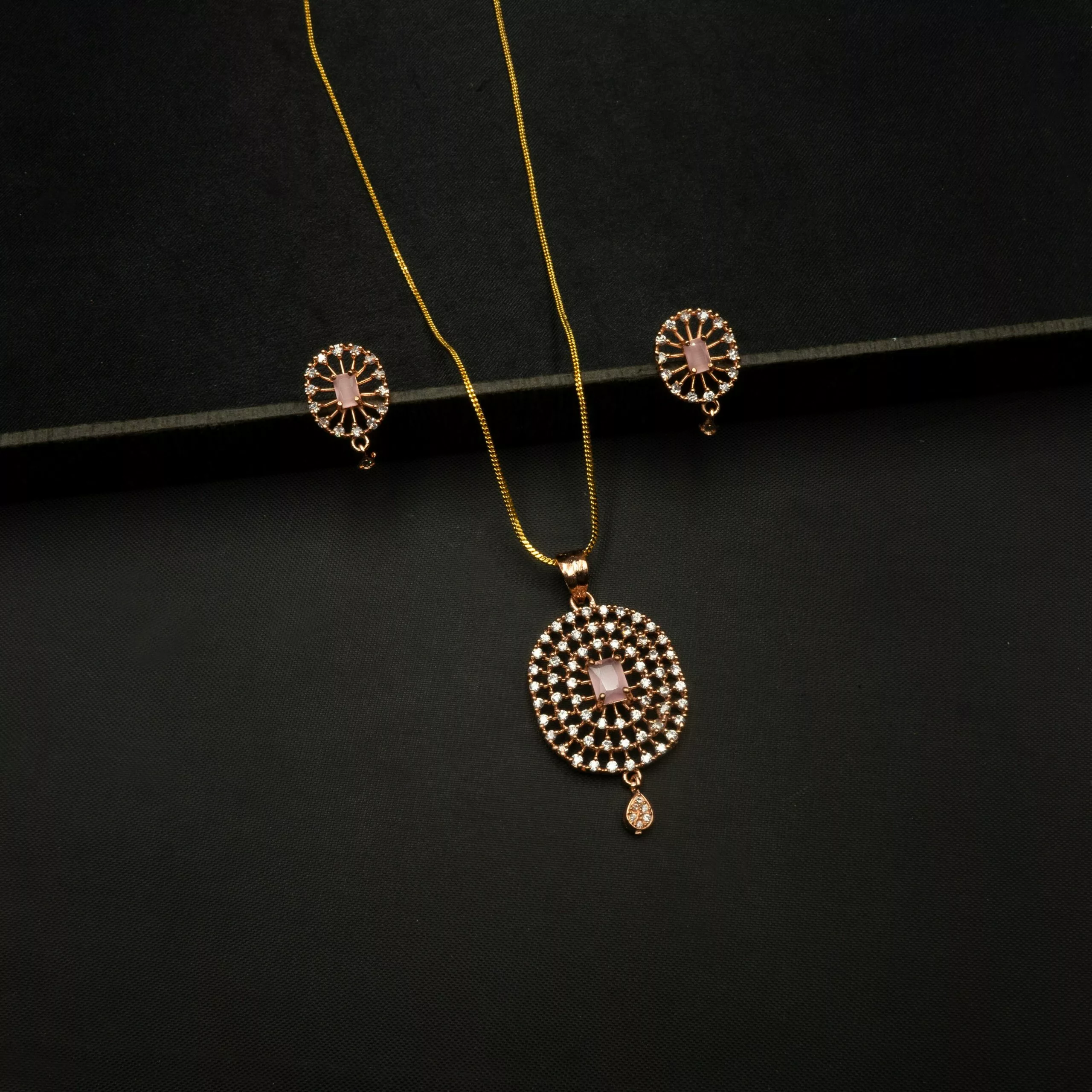 PS-2212016 – Rose Gold Plated Pink Stones Pendant Set