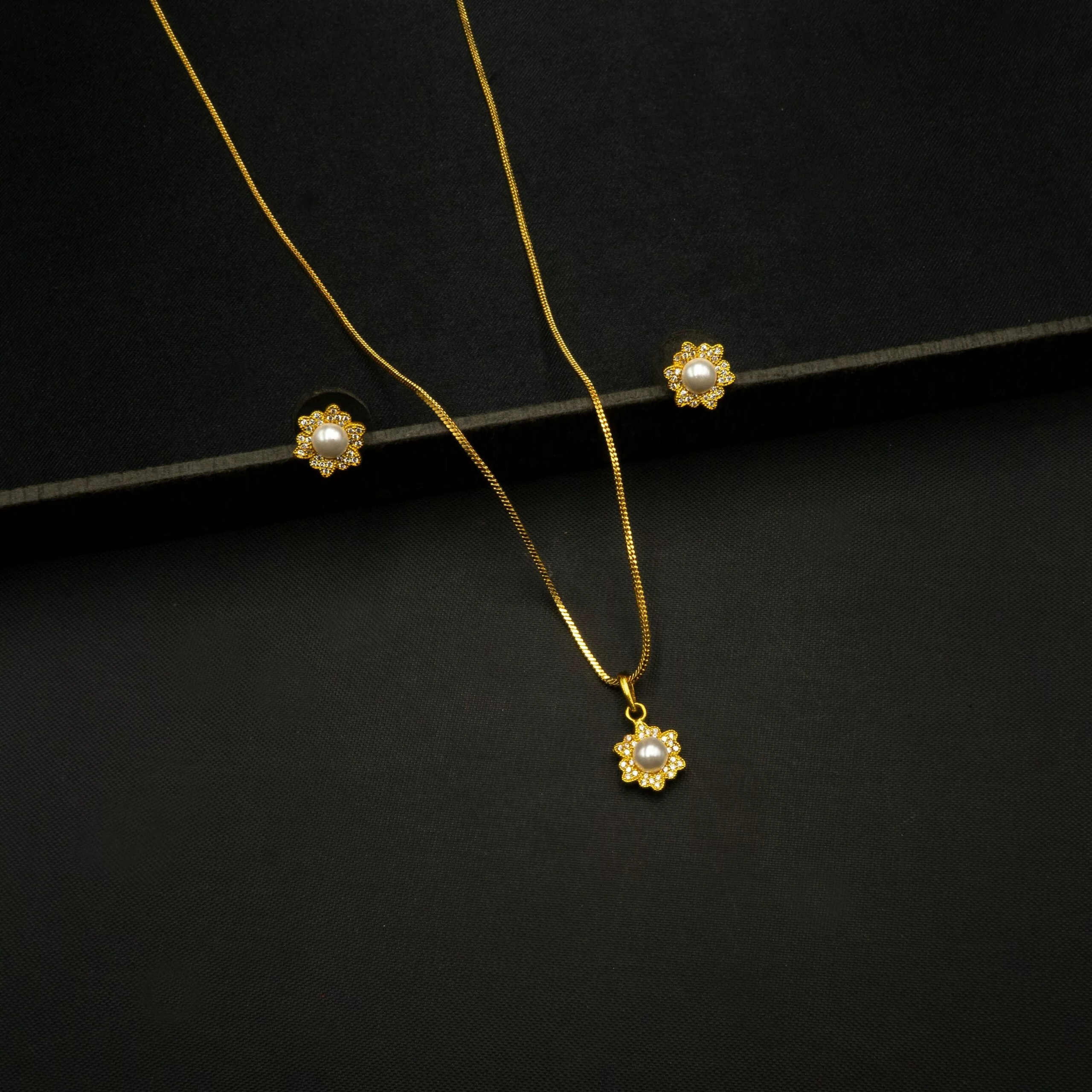 PS-2212018 – American Diamond Flower Design Pearl Pendant Set