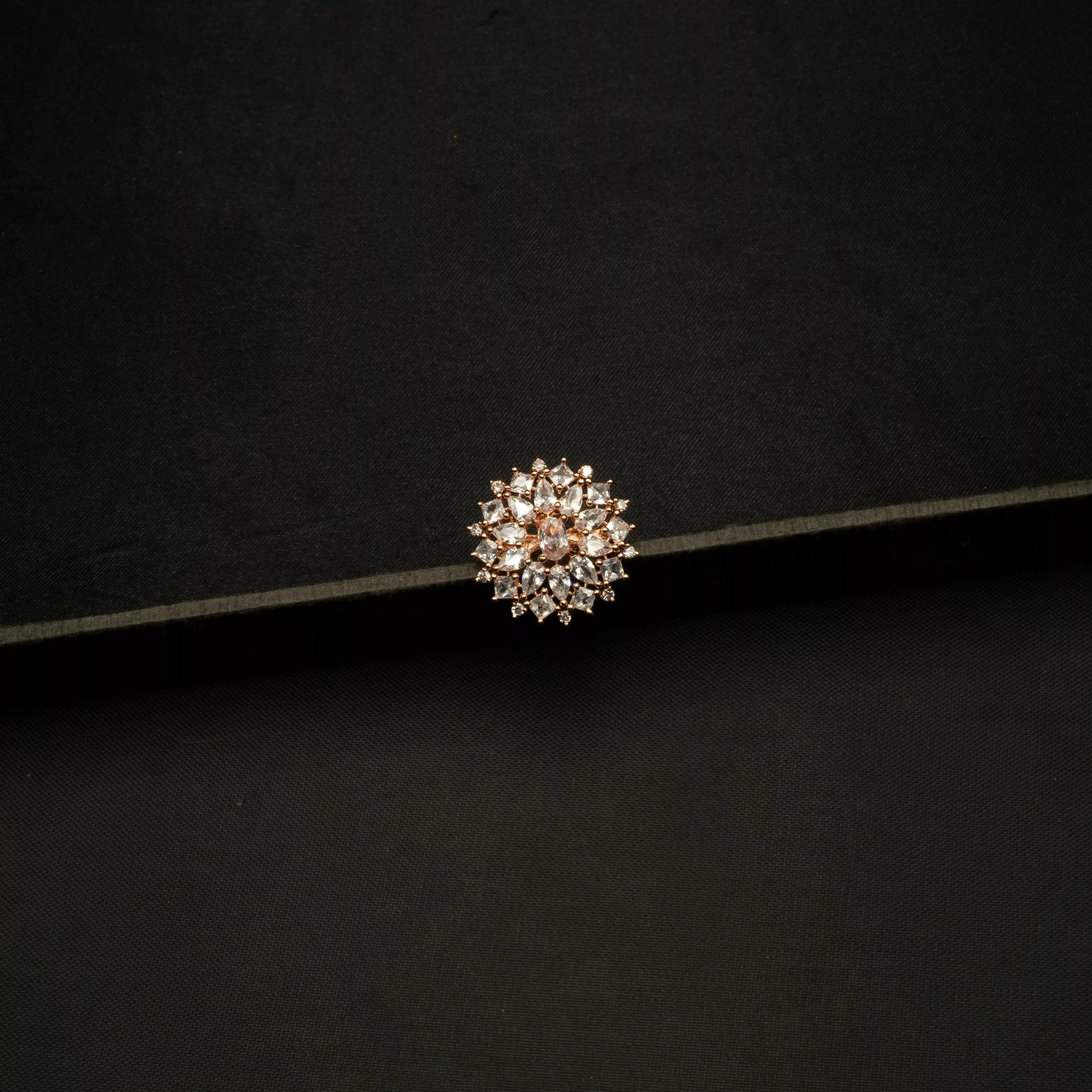 Tags: Adjustable, Adjustable Ring, American Diamond, Brass, Cubic Zirconia, Flower, Ring, Rose Gold, Rose Gold Plated, Statement Ring, White