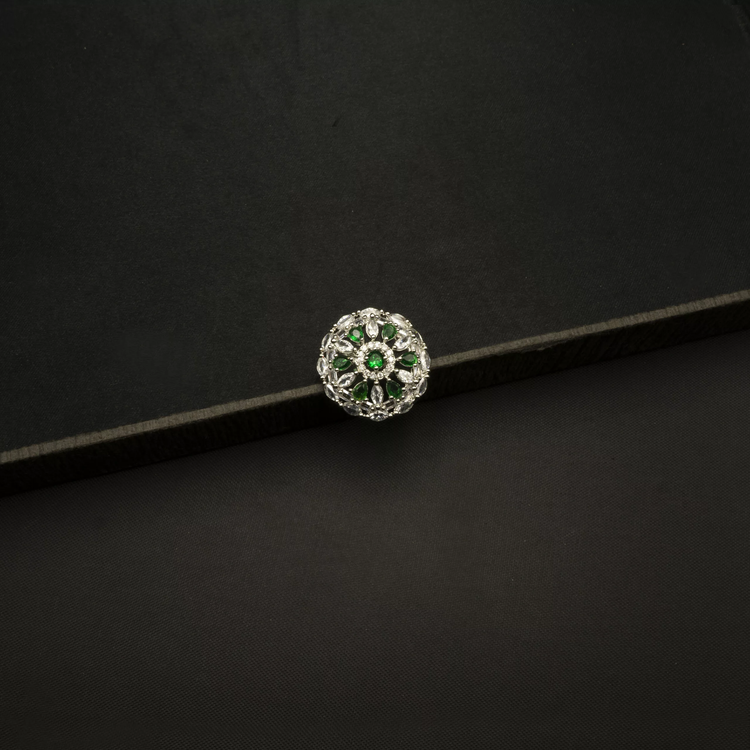 Be the first to review “RI-2212003 – White Gold Plated American Diamond & Emerald Adjustable Statement Ring” Cancel reply