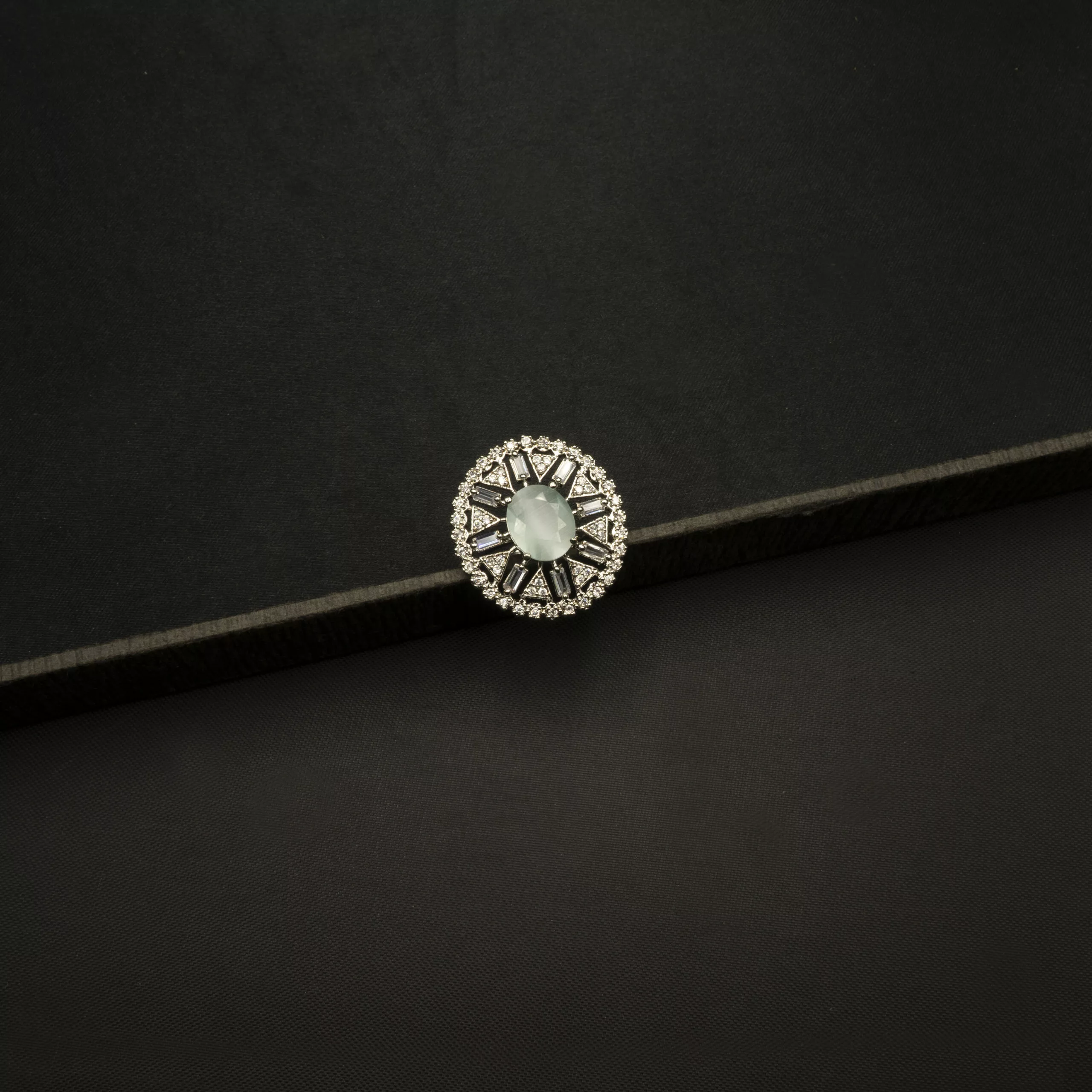RI-2212006 – American Diamond & Mint Stone Adjustable Statement Ring