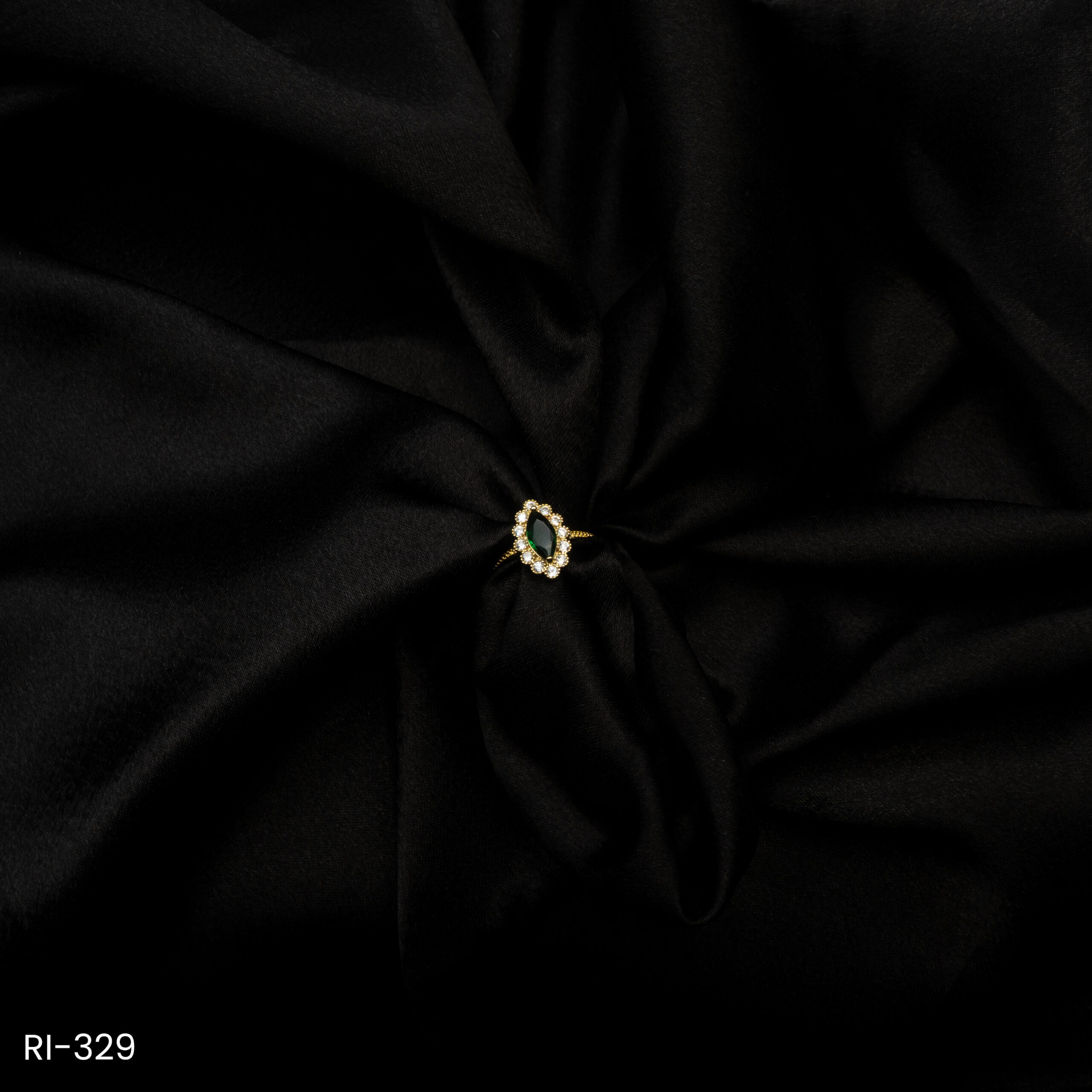 RI-329 – Dainty & Classic Adjustable American Diamond Emerald Green Marquise Halo Ring
