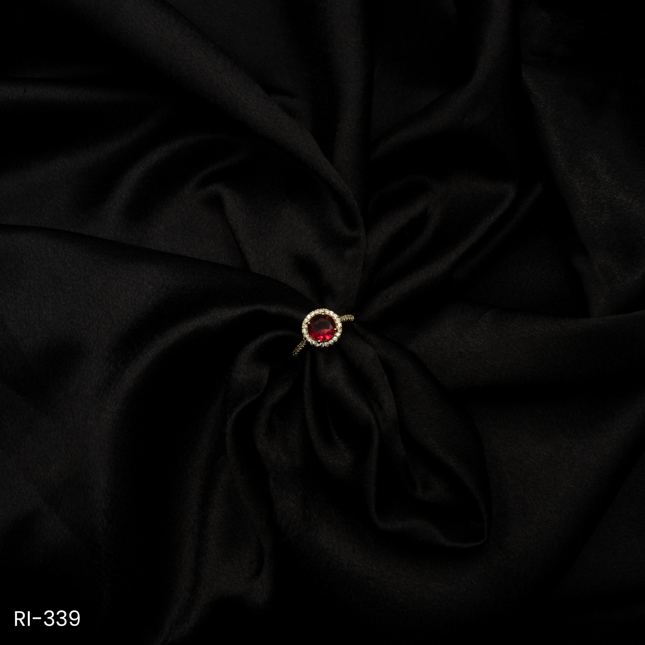 RI-339 – Golden Glam Finish American Diamond & Round Ruby Red Adjustable Ring