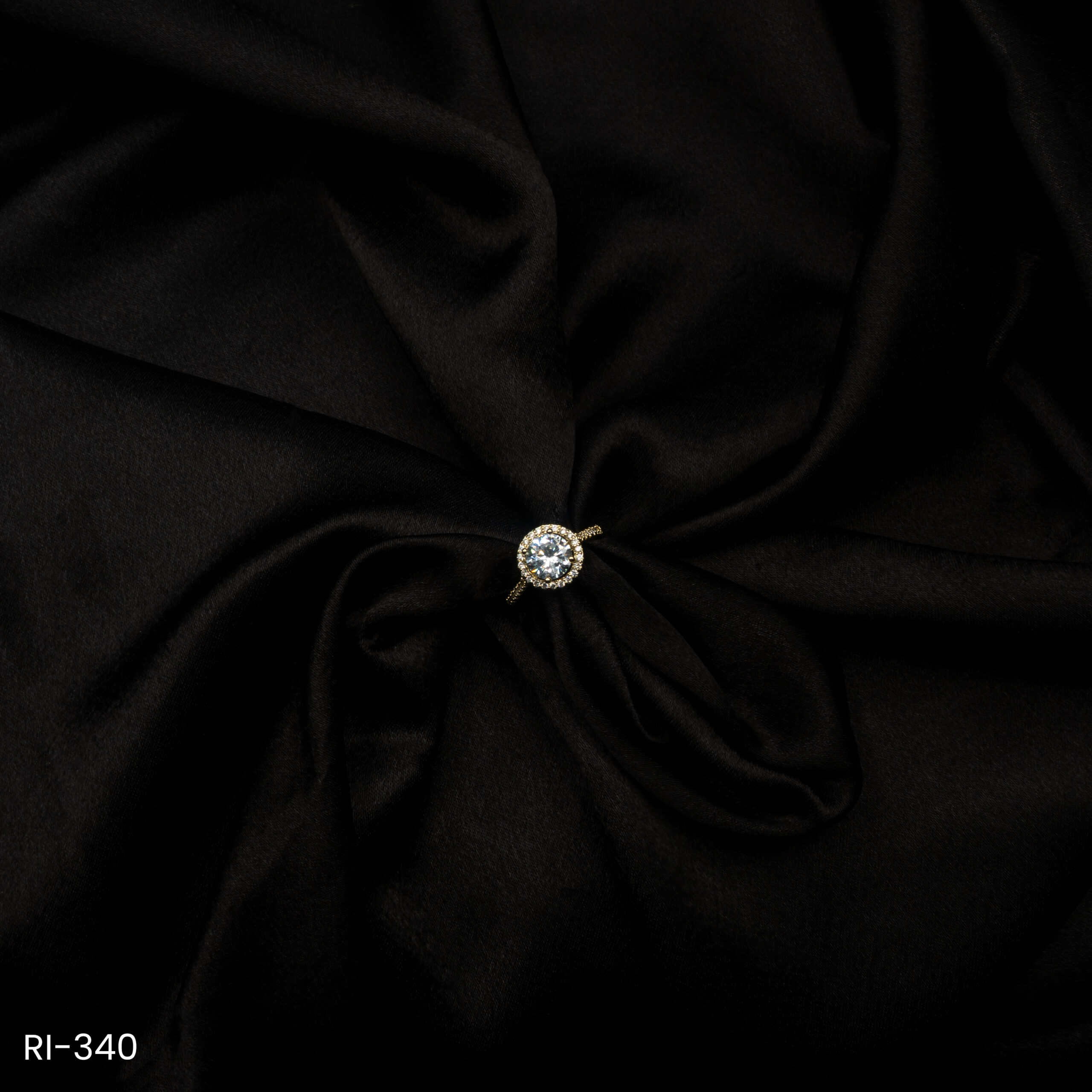RI-340 – Golden Glam Finish American Diamond Round Adjustable Ring