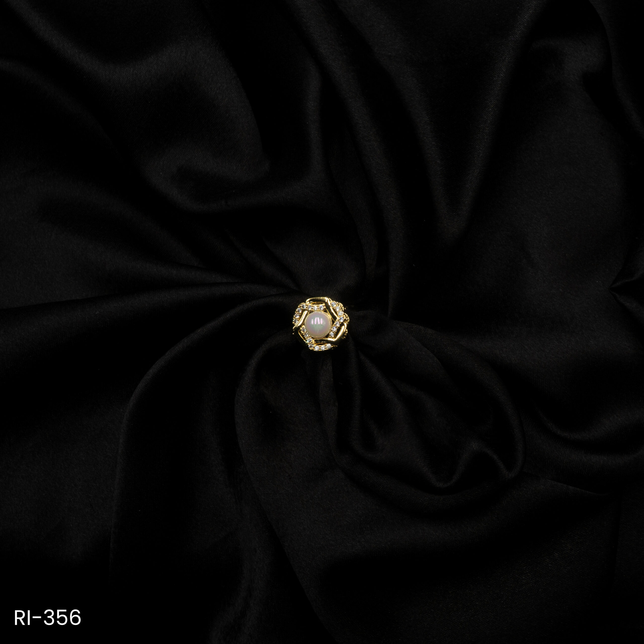 RI-356 – Ethnic Glam Retro Pearl Sparkle American Diamond Adjustable Ring