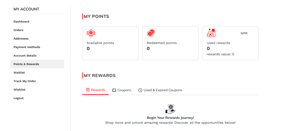 - Once you have logged in access the reward point section using the link https://meesaa.com/my-account/loyalty_reward/