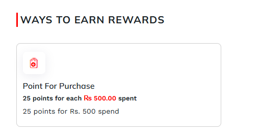 - You will earn 25 points for each ₨ 500 spent on the website.